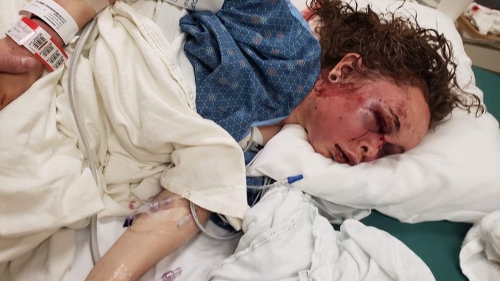 Along with this, she has major wounds allover her body, worst being her head and face. Her eyes are swollen shut, and her nose is broken. She is unrecognizable.
