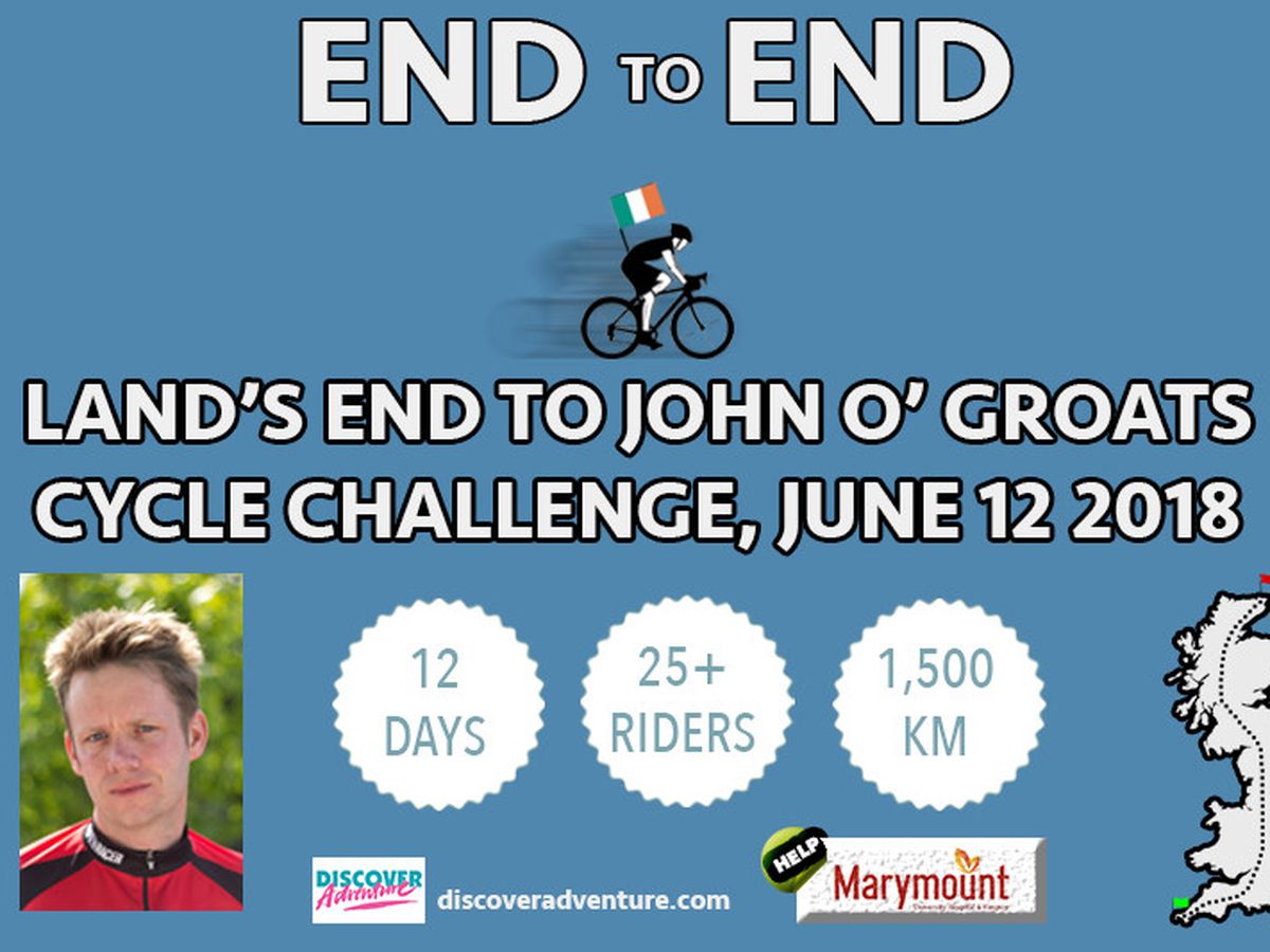 I am going to take on the challenge of a charity cycle from Land's End to John O'Groats (UK). This is both to honour my uncle who passed away of cancer in 2016 and to see how far I can push myself whilst also supporting the vital work of the Marymount Hospice in Cork