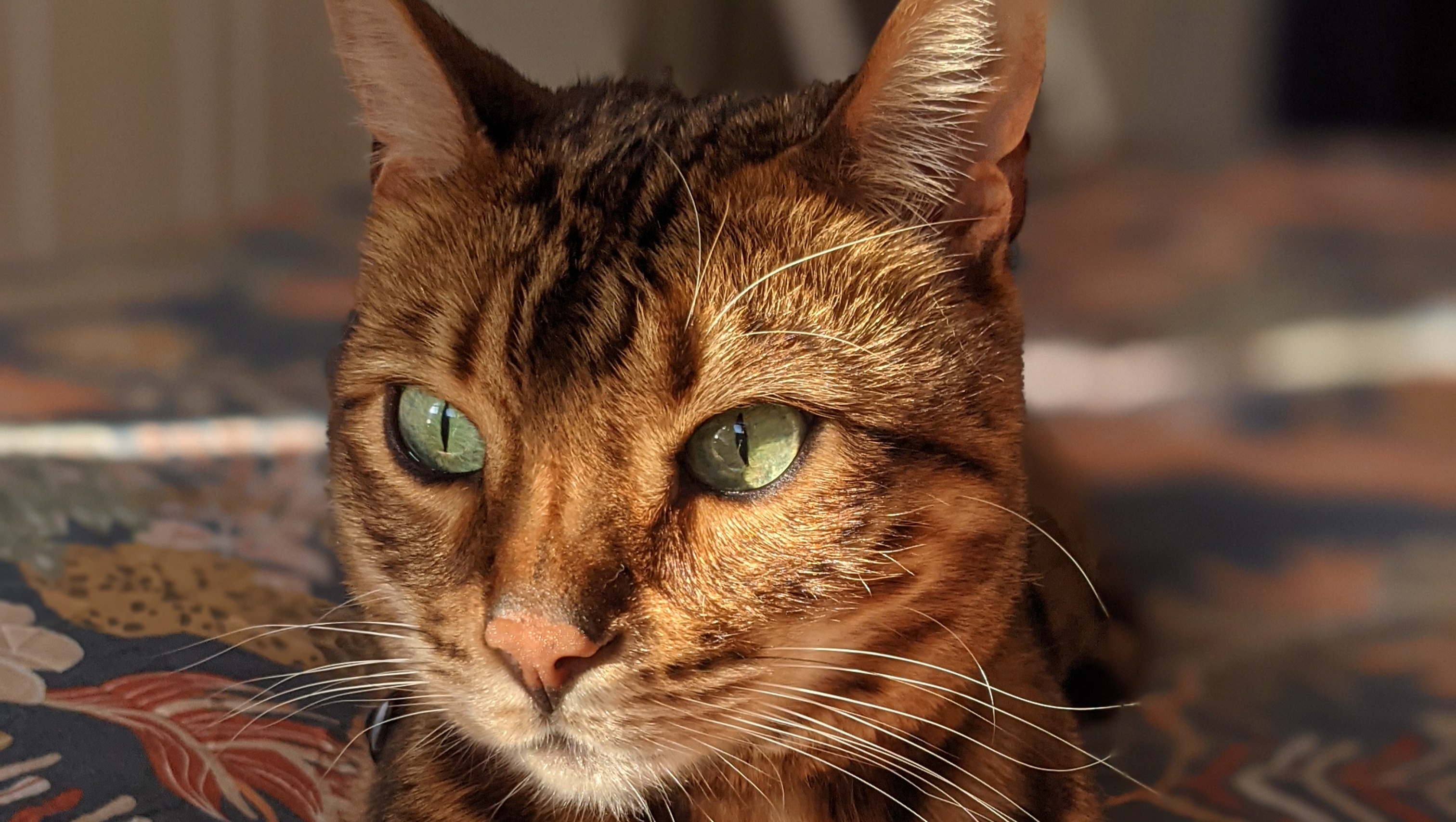 When I got Spike 9 years ago, he made sure to tell me it wasn’t going to be a quiet ride. In true Bengal fashion, he screamed his way into my heart quite quickly. Spike was never happy with just being a cat. He always needed to be more. Fast forward a few years and I now have a cat who thrives on a lead, spends his time chasing chipmunks and squirrels, and sunbathes (whenever this country has sun!). Don’t get me wrong, in true cat fashion, he loves a cardboard box, wire tie and headboops, and he always makes it known that he’s the boss. From builders and repairmen coming to the house, to friends visiting, everyone gets an earful and falls in love with his deep piercing eyes and cool looking spotting.