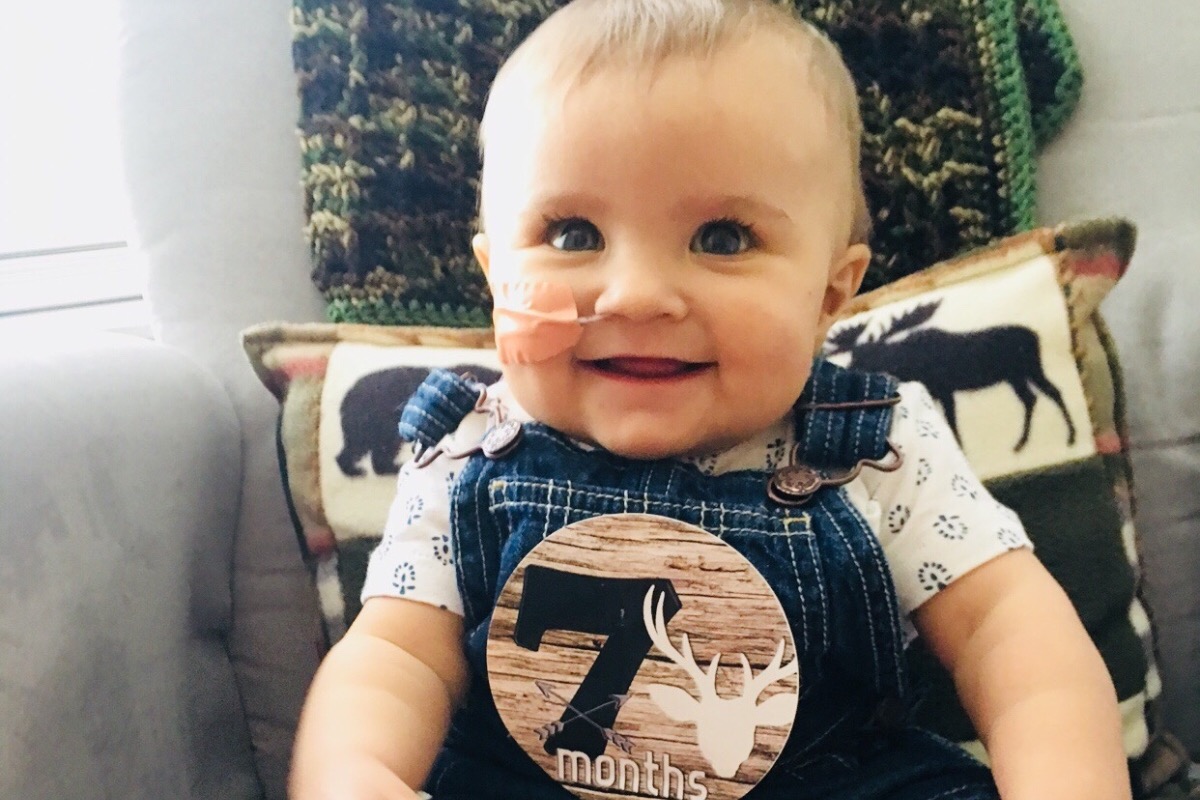 Our sweet Brayden was born Feb. 11th at 10:11am 7lbs 6ozs 20” long. He was a beautiful healthy baby. Little did we know he would be diagnosed with Hirschsprung Disease. He stayed with us in our room until 11 o’clock  that night. We were told Brayden needed to go to the NICU for some further evaluation as he would vomit green bile each time I tried to BF him. That following morning they ran dye test and realized nothing was coming through to his diaper but urine. So they quickly put a tube down his nose and hooked him up to a suction machine to empty his stomach. By day 3 of life Brayden underwent biopsy surgery where they placed his first ostomy. He was under anesthesia for 6 hours. Dr. Pipkin told Grant and myself Brayden had Hirschsprung Disease which is very rare (1 in 5000 babies) but to top it off he had the rarest form of the disease. They would eventually have to go back in and biopsy some more of his intestine at a later time to in hopes find ganglion cells. March 23rd we did our second surgery and found the ganglion cells we needed. (Left us with 100cm of good small intestine left). By May 7th we got discharged from NICU. A full 85 days of a emotional roller coaster and having our son be a HUGE experiment. Everyday I’m blessed to have Brayden here with us and blessed to see him grow and get to the potential goals we have placed for him. He is a true miracle baby and a blessing to Grant and myself. We love our NICU miracle and even though we brought the NICU home with us, We are one blessed family.