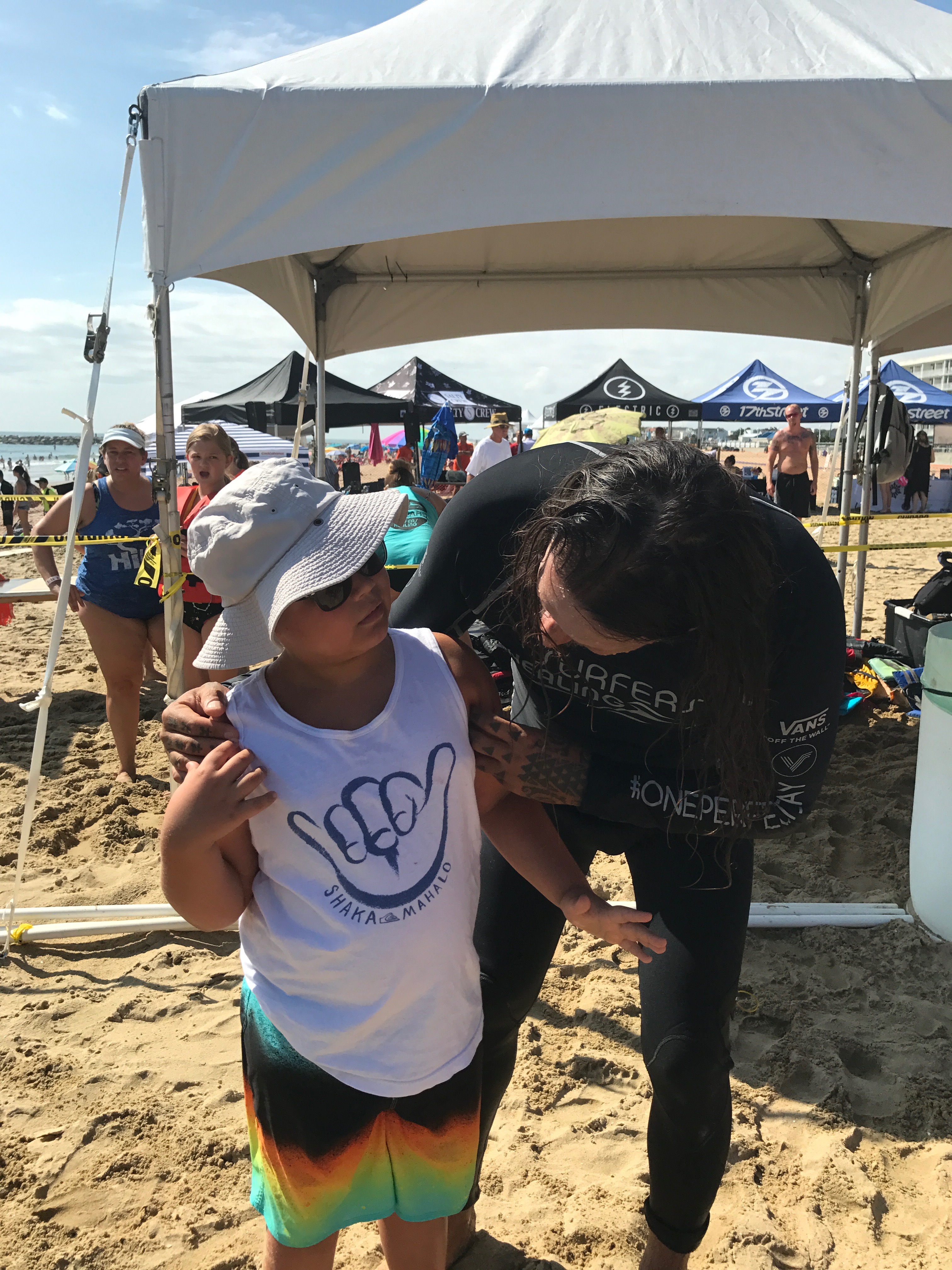- Hi everyone! My name is KATINA BOCK, and I’m raising money for a cause that means a lot to me. Surfers Healing comes to VB once a year and surfs 400+ kids. They get breakfast and lunch (chicos and chick fil a) they have an area blocked off with chairs and umbrellas. There are many tents full of resources for our kiddos. No age limit or size limit they still surf Hayden. It truly is one of the most amazing events to watch. I have not missed a year since Hayden was 4(he’s 17) if he’s not surfing I volunteer, believe it or not volunteering is so much fun. I have new volunteer buddies, Jodie Frame and her kids Morgan and Trenton. Our long time friends Mike and Doreen hall. This event is so special to me. It’s our favorite day of the year. As a mom with a kid with profound autism, being able to have an entire day of fun on the beach without worrying about the dirty looks, whispers and people moving away from you is absolutely priceless, and they get to surf! They get a swag bag and all the tents have treats and toys for them. pLEASE HELP ME GIVE BACK to a charity that have the biggest hearts on this planet!