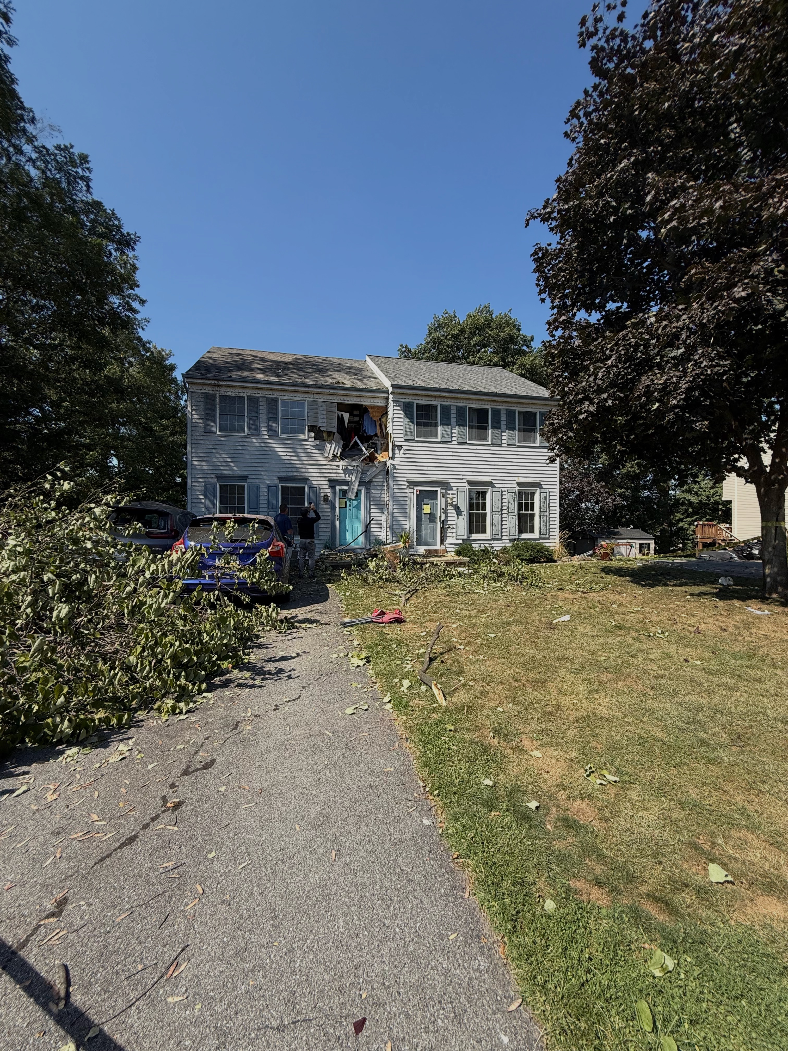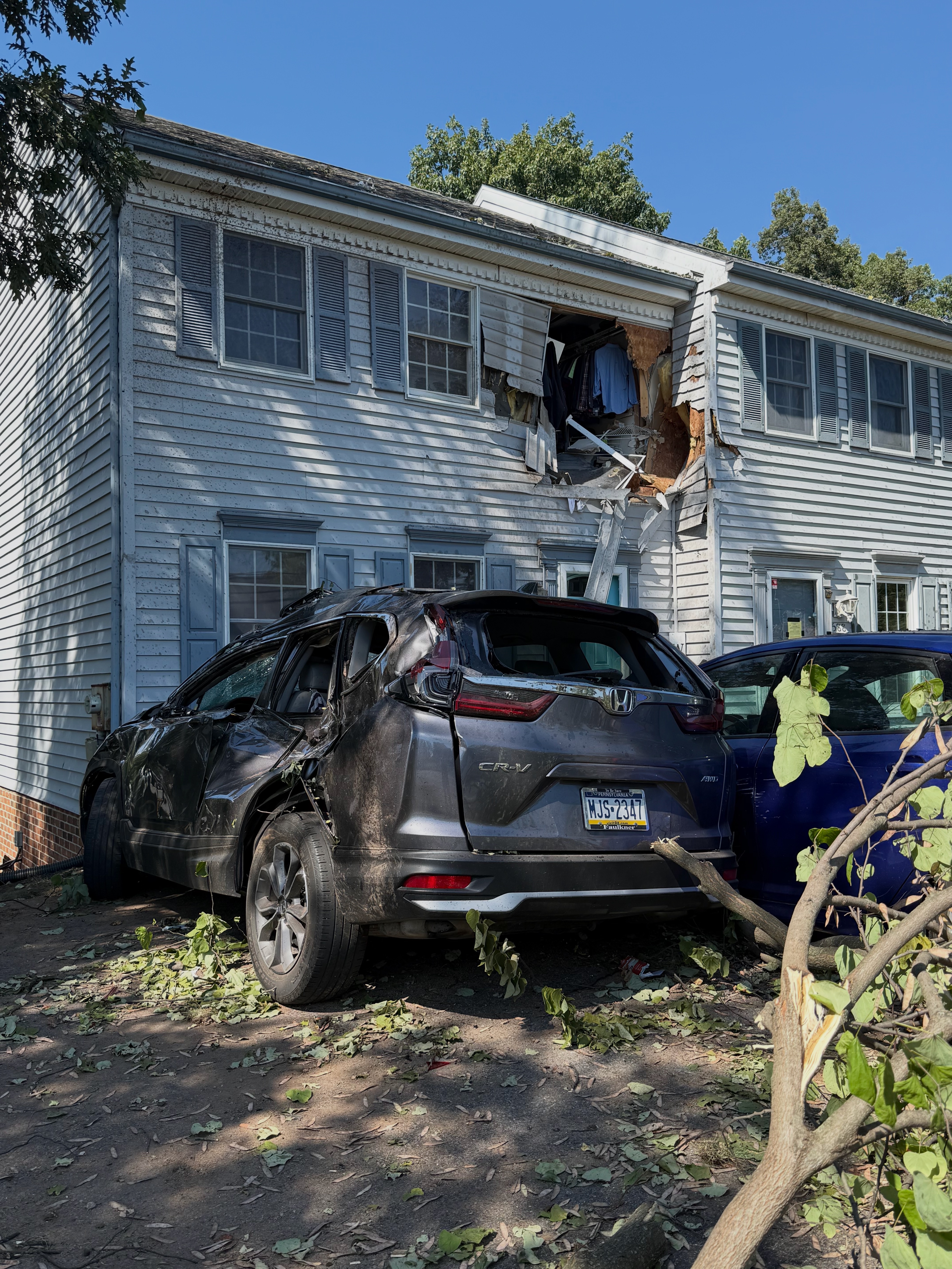 The truck hit the curb outside their home, struck a tree, smashed into my aunt’s car (pushing it into my cousin’s car), then went airborne into the second floor of their house before landing in the front yard. It’s nothing short of a miracle that they walked away safe.