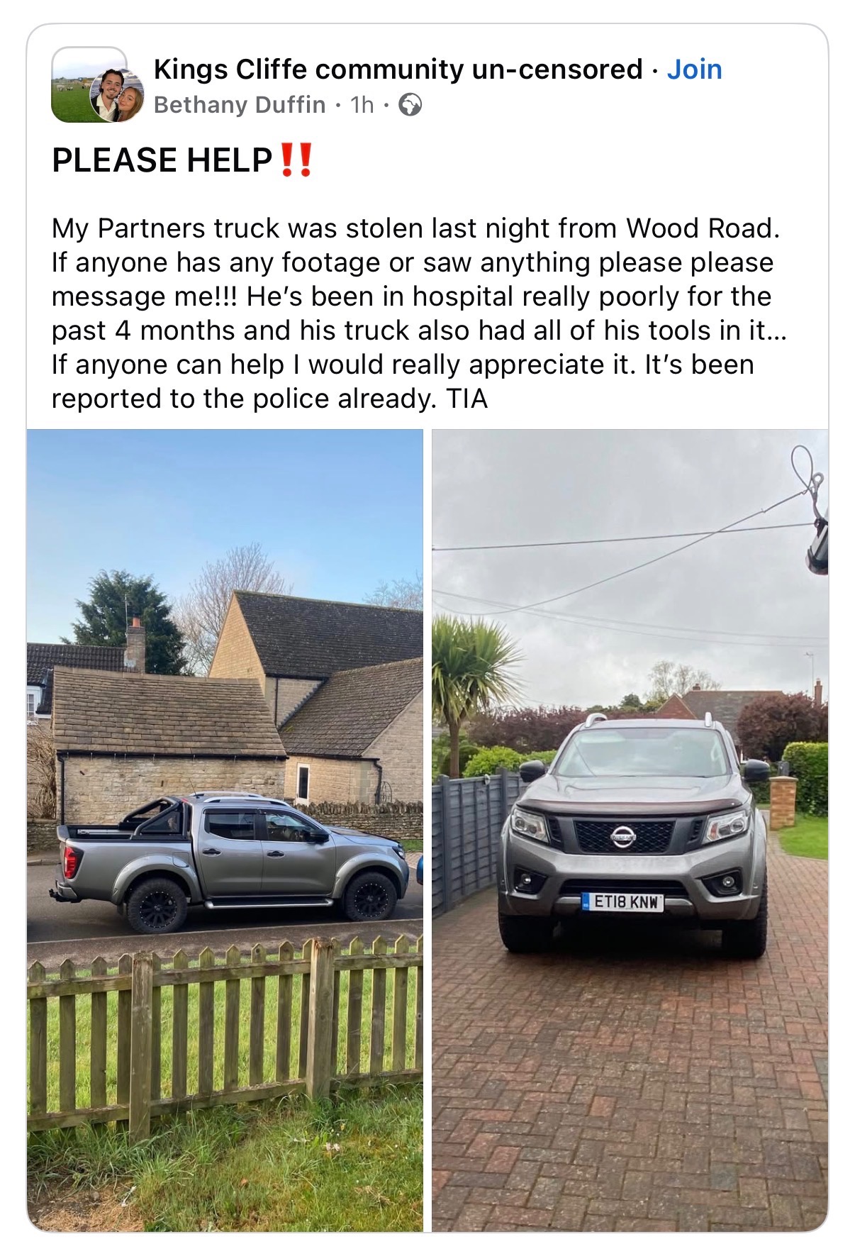 But, as if this diagnosis wasn’t enough, while Tommy was in hospital receiving care, his pride and joy.. his truck was stolen from outside his home. Inside were all of his tools, everything he relies on to run his business and provide for himself. In one cruel moment, he lost not just a vehicle, but his livelihood.