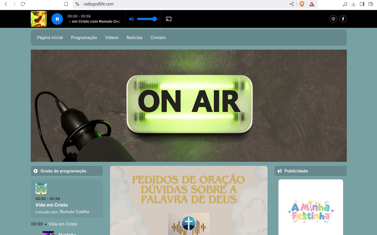 Sou Rômulo Coelho, nossa Rádio God Life nasceu de um sonho com propósito: levar a presença de Deus até onde os pés não podem ir — por meio de louvores, mensagens e orações que alcançam vidas no mundo inteiro.