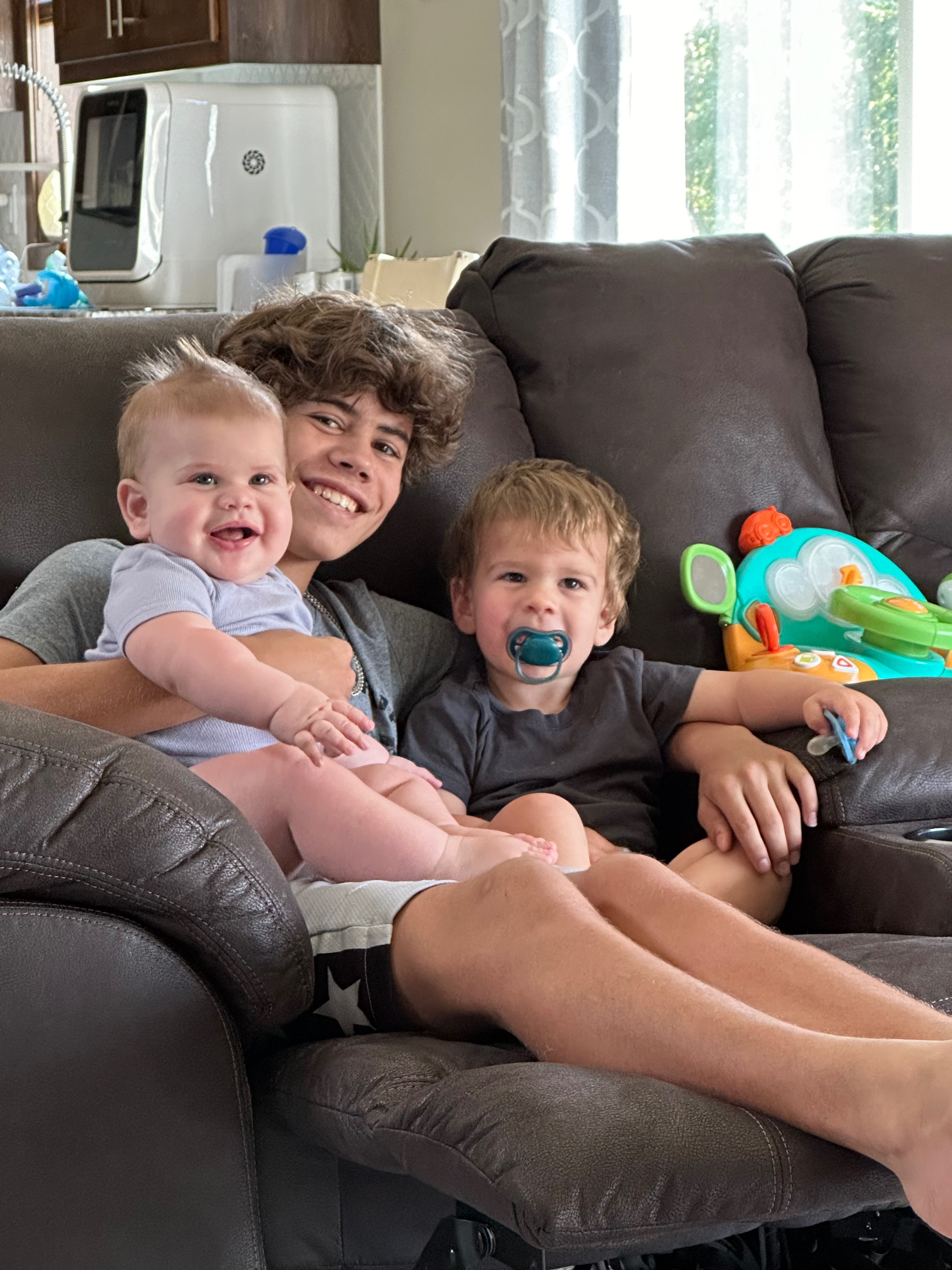 Meet Liam — our “baby brother,” an 8th grader who is pure sunshine. He’s the kid who is everybody's best friend, always happy, laughing, always moving—soccer, riding his bike, running around outside, video games, and even piano and cello. Liam brings energy and kindness everywhere he goes, and he makes people feel better just by being himself.
