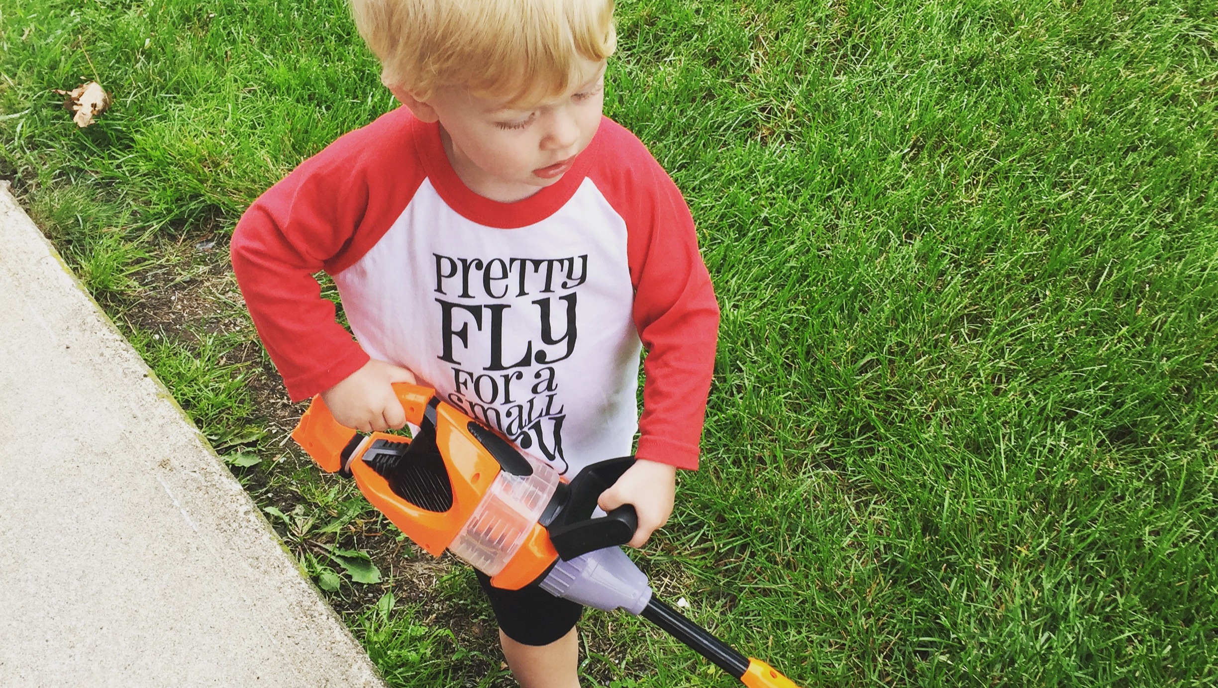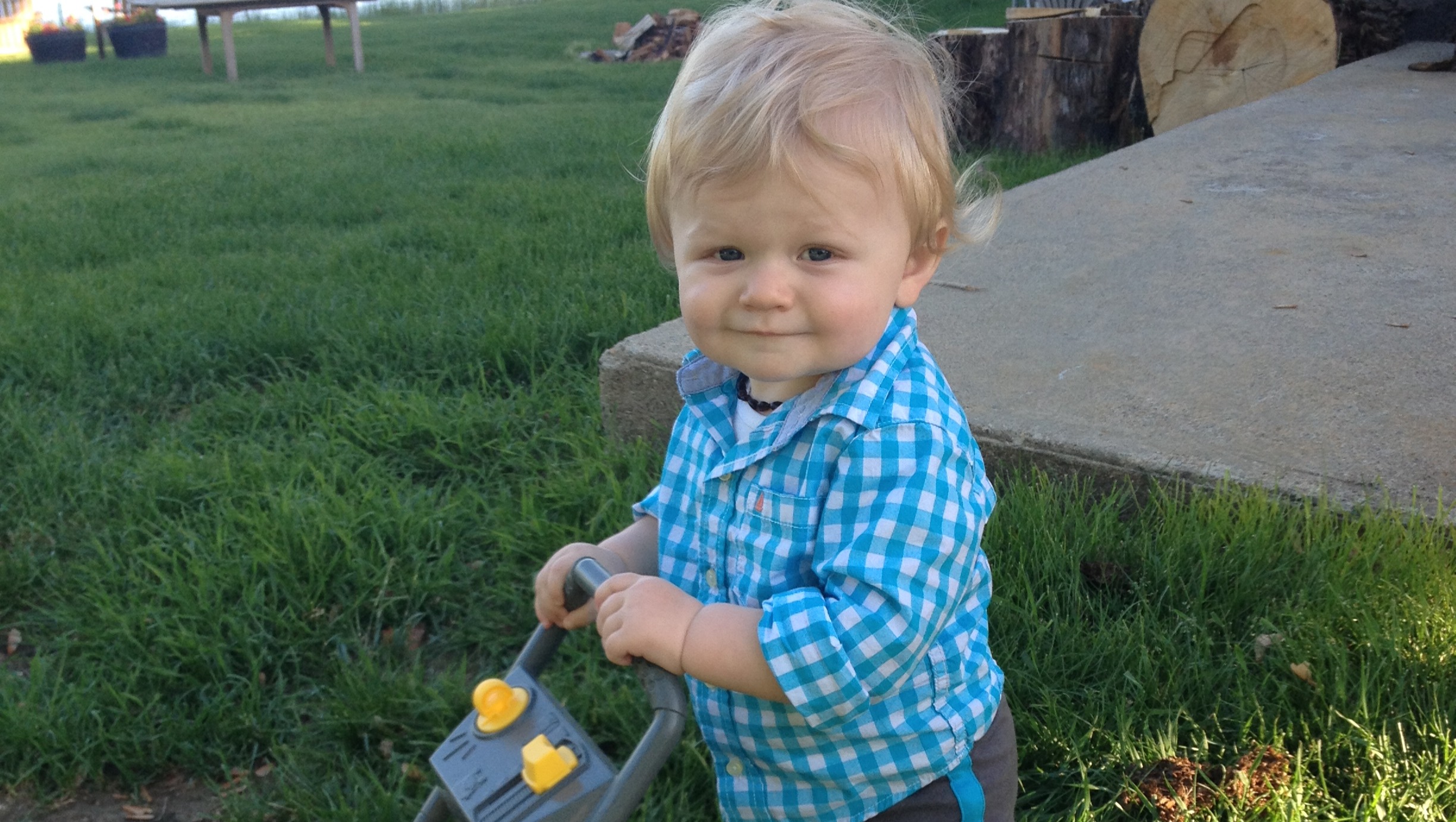 He owns all the toy tools and machines and has enjoyed pretending to do landscape work whenever he could.