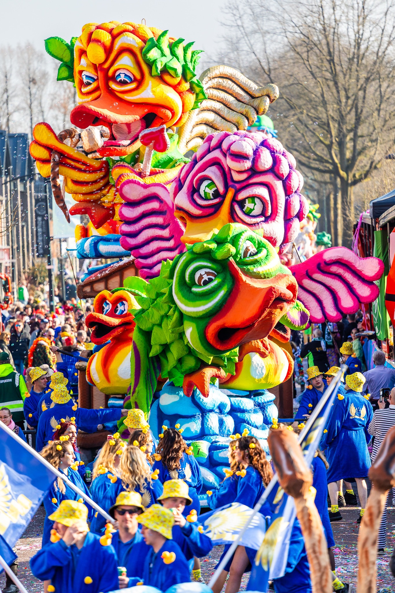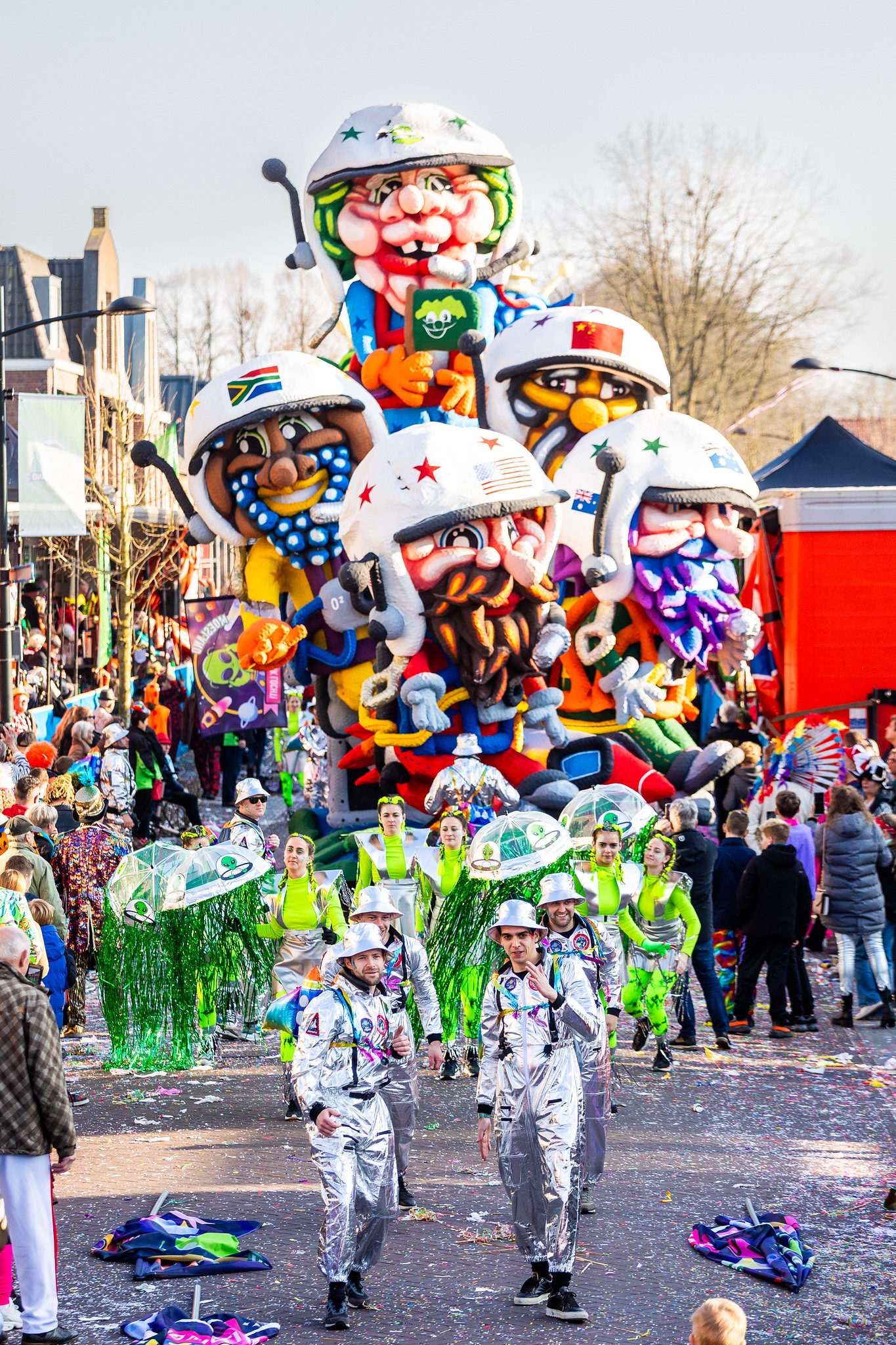 De bouwers van het Moesland, maar eigenlijk: iedereen die een groen carnavalshart heeft. Van de kleinste frotters in ‘t Frotkot tot de grote groepen die jaar in jaar uit metershoge creaties door de Schaijkse straten duwen. Wij zijn het dorp dat een van de mooiste optochten van de regio (en ver daarbuiten) bouwt.