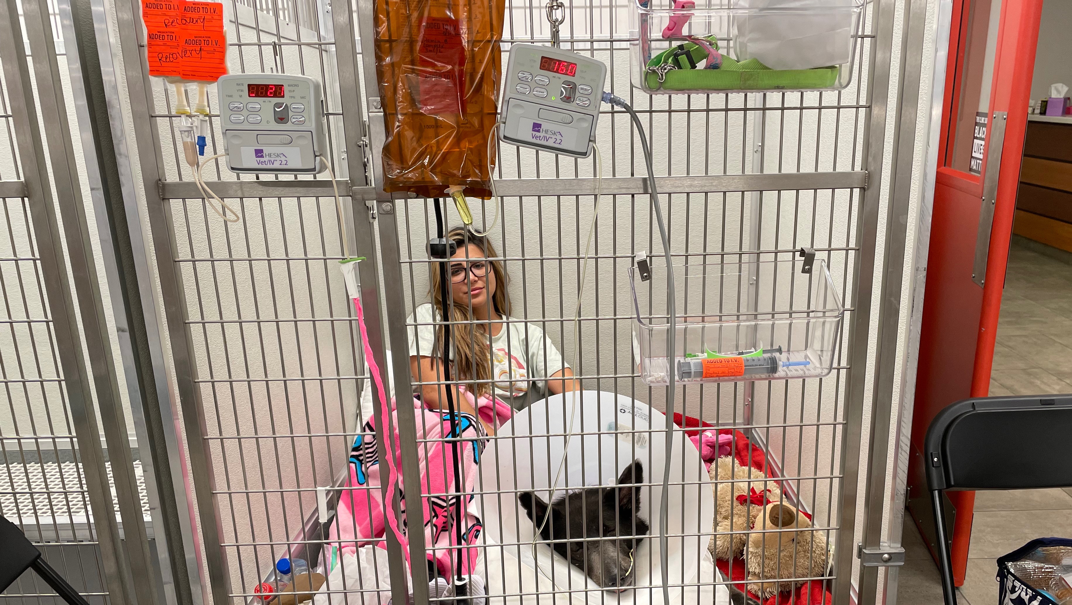 Out of the blue, she stopped eating and quickly discovered her liver is severely compromised with a low bone marrow count, so life supporting measures took place. She’s been given an IV for her medicine around the clock and a feeding tube up her nose. Her red and white cell count is low, but the doctors believe a full recovery is possible with specialists being able to diagnose this. All the doctors and nurse fell in love with Lucia’s sweet personality and when given a chance to go to an ER with specialists in Richmond that would squeeze her in, the ER doctor treating her from Washington DC insisted to drive us to Richmond’s Vet specialist after his full shift (since I don’t have a car and been ubering from hospital to hospital).