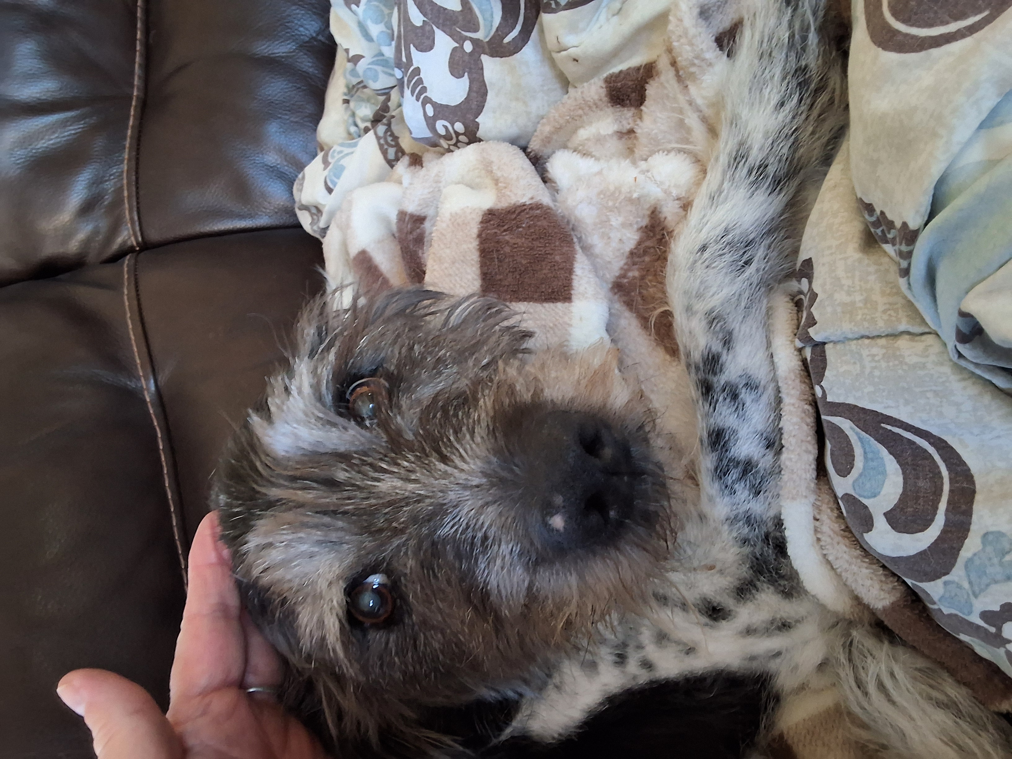 Freckles was one of the dogs that I rescued and fostered back in 2010. He was terribly abused, and he never was able to overcome his insecurities and distrust of other people, so we kept him as our own. Freckles is a loving, sweet dog, very sociable with other dogs, and enjoys his walks around the park.