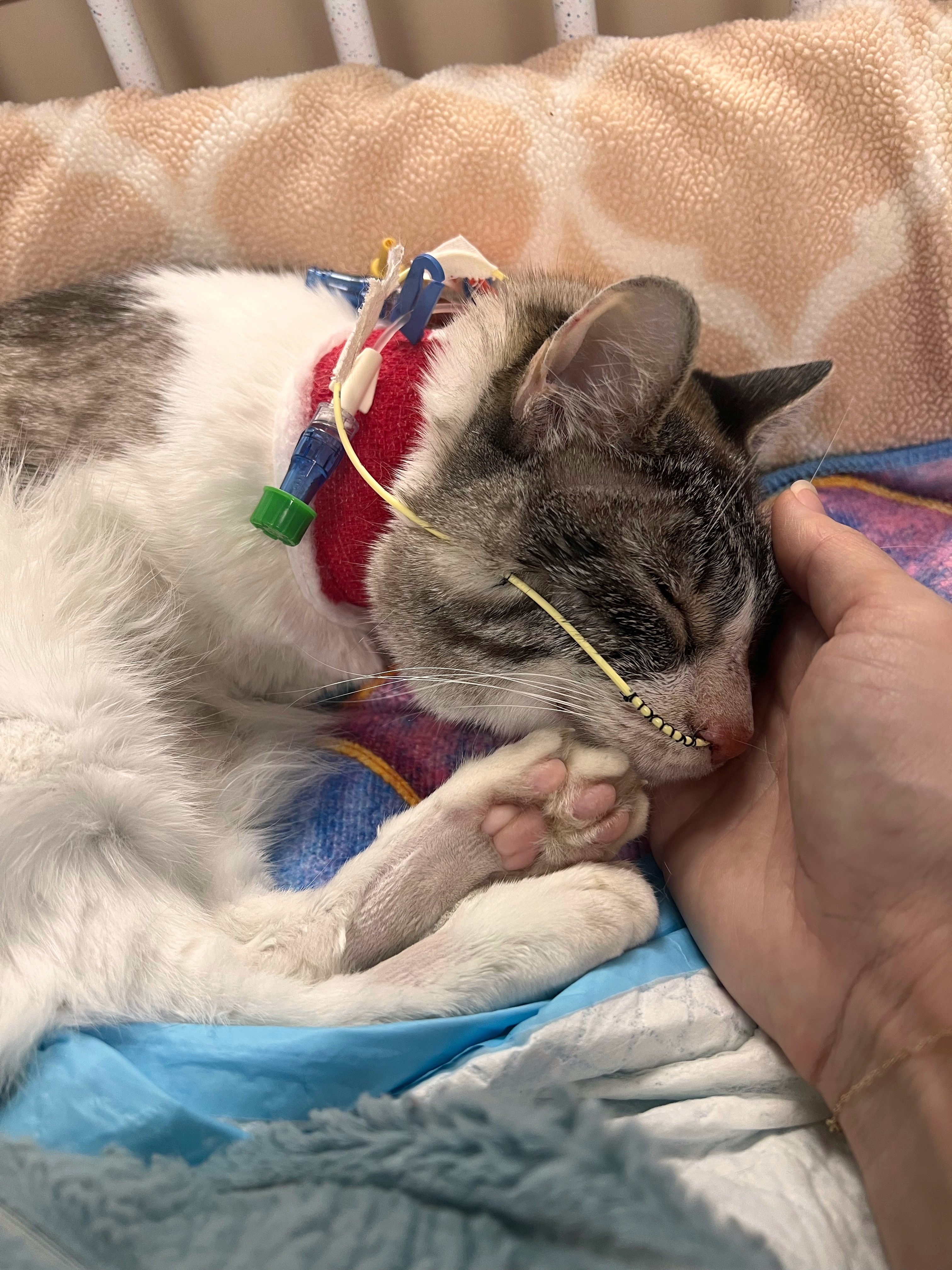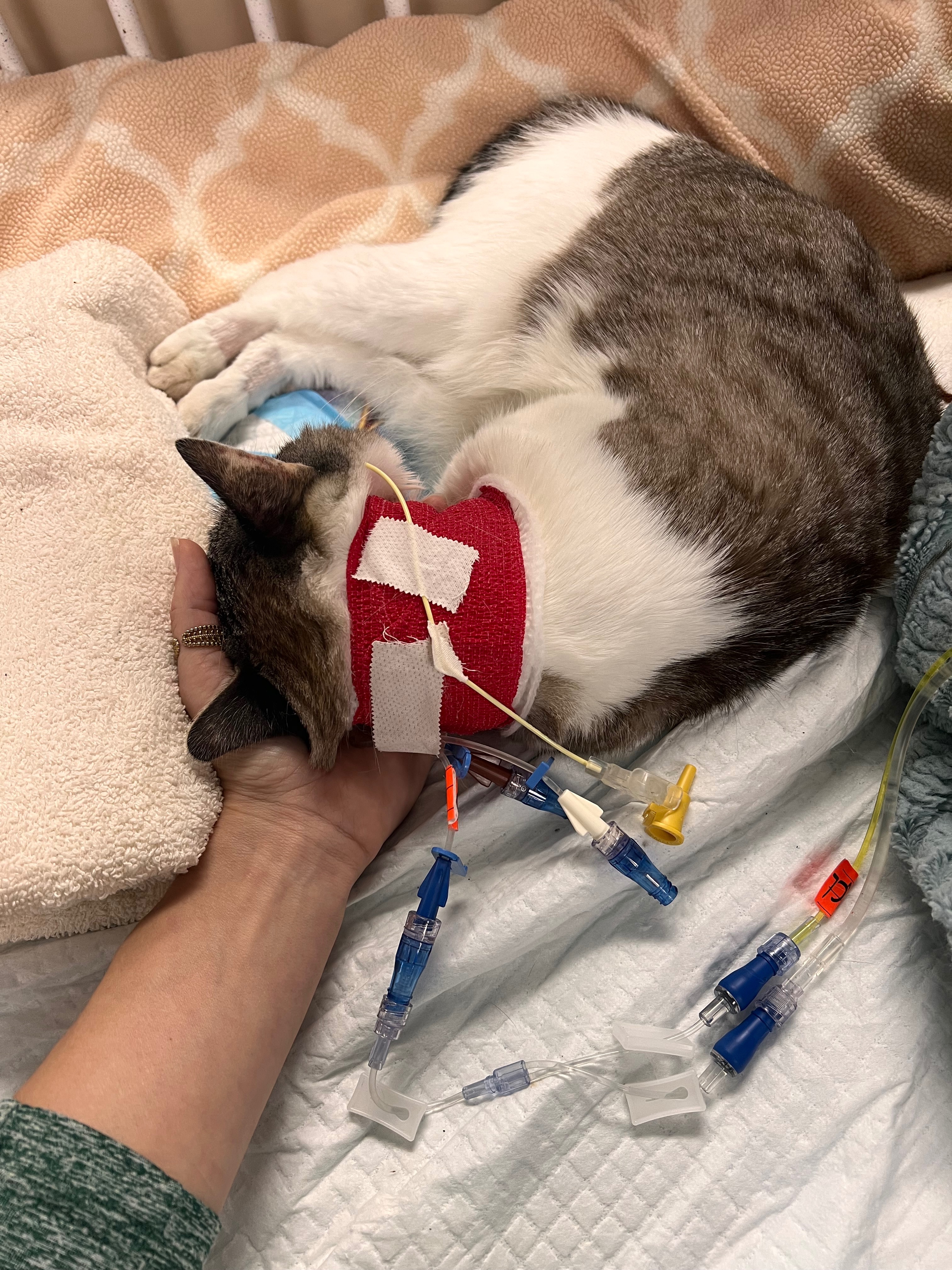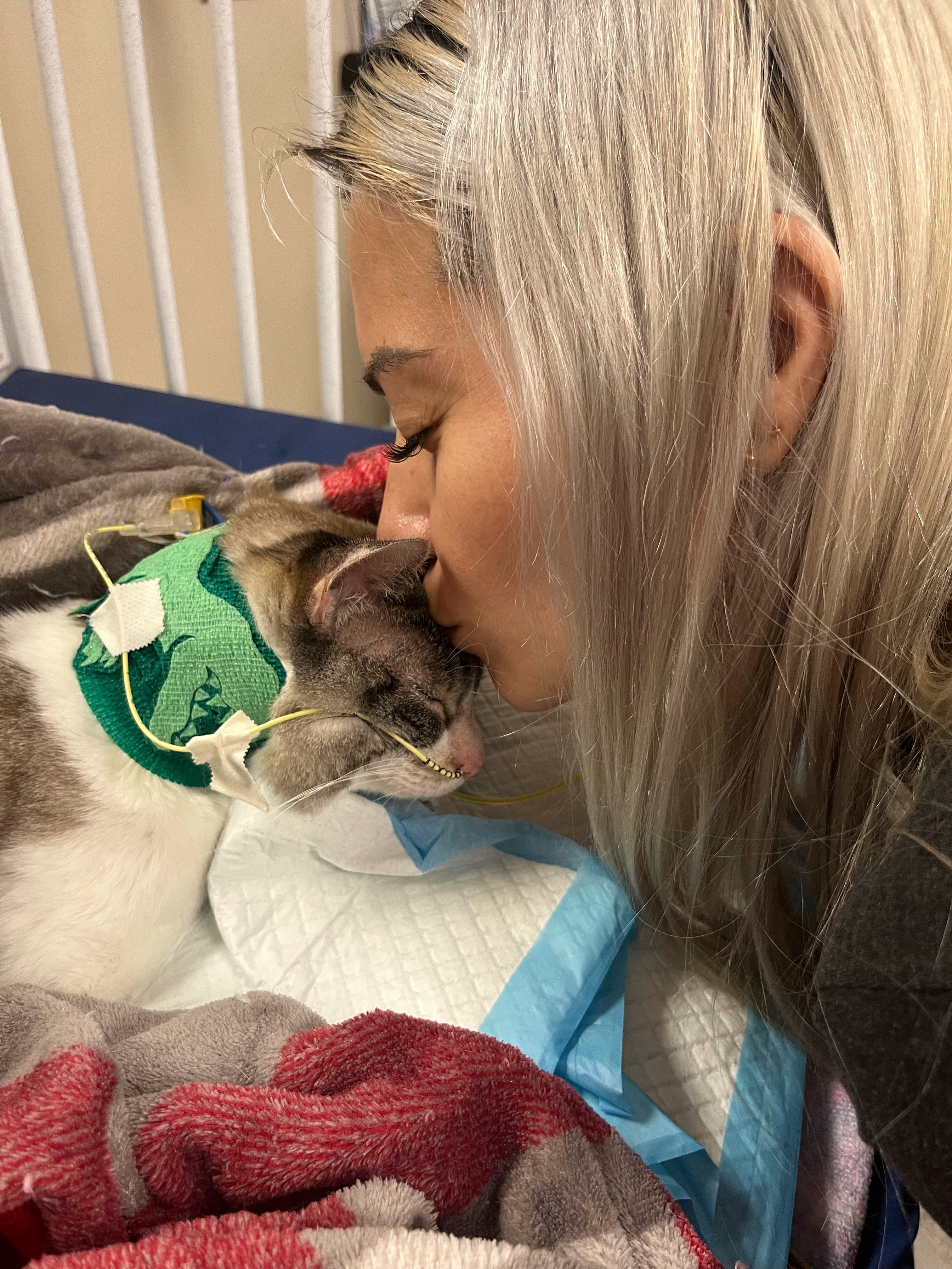 Hello, my name is Jackie, and I am Lil’ Bunny Sue Roux’s mom (she is Roux for short). Roux is an 11-year-old two-legged cat, as she was born without her front legs. Roux is currently not doing well. We brought her to an emergency vet hospital late Wednesday night (October 8th) after observing she was not feeling well and was having GI issues, including severe vomiting. Her condition worsened very quickly and she went into sepsic shock. This was an incredibly scary diagnosis and grave prognosis. On Thursday (October 9th), she was transported to a critical care unit at a different sister emergency hospital and has been there since then. She has been taken care of so well by all of her medical teams and treated like the special baby she is. We are doing absolutely everything possible to save her life. This unfortunately means her medical bills are skyrocketing and are now close to $8,000. Any donation to help save Roux is so very appreciated! I will provide updates here. Thank you so much for your support from the bottom of our hearts, it means so very much.