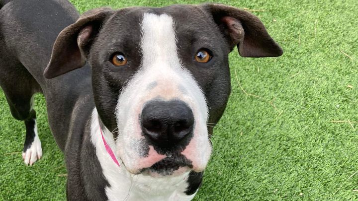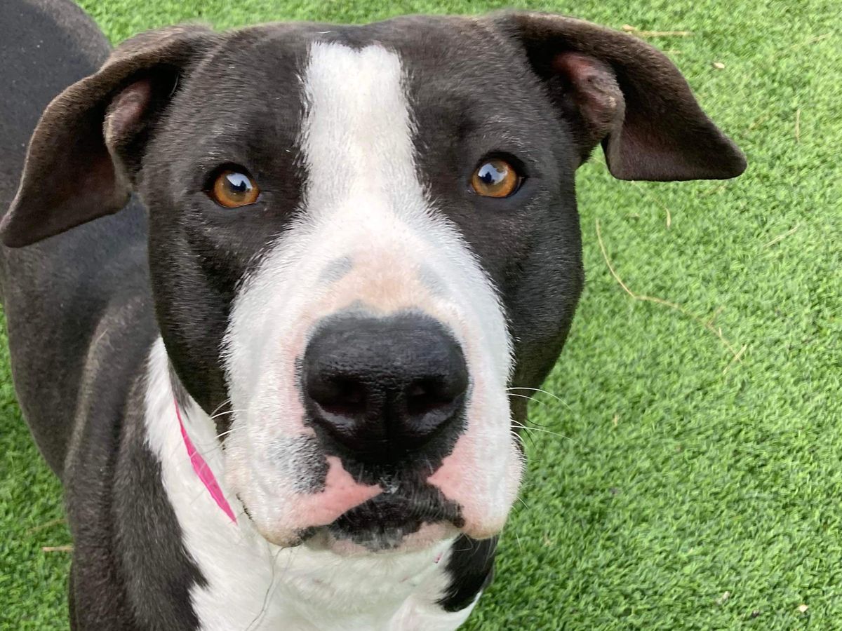 She’s only had positive notes from volunteers since coming in. She has been easy to leash and takes treats gently. She’s a sweet goofy girl that loves to play and be pet and deserve a chance at life. She’s been in playgroup with dogs her size and done well.