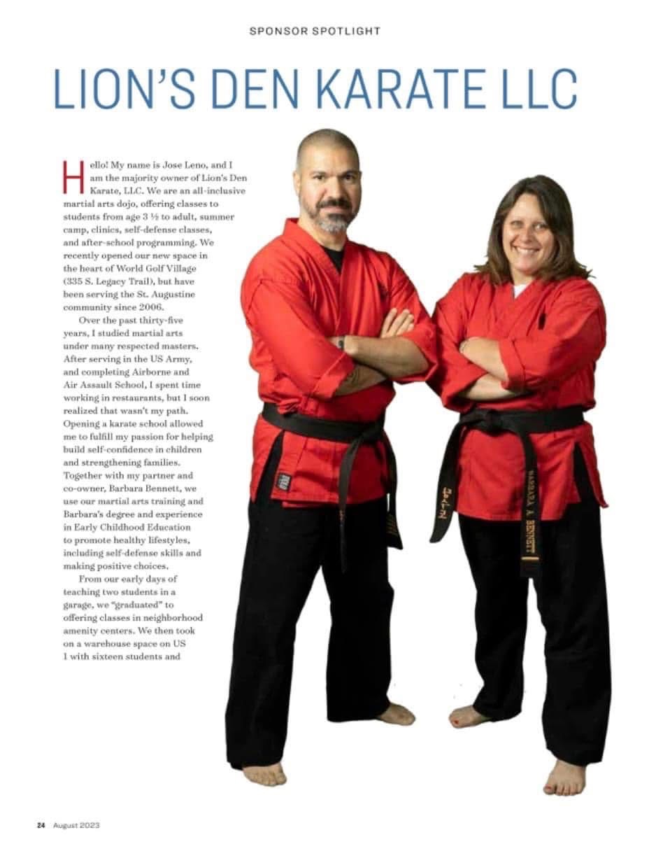 While Lion's Den is home to the only competitive karate team in St. Augustine, what sets it apart cannot be measured in trophies or medals. Ask anyone here and they will tell you - this place changes lives.