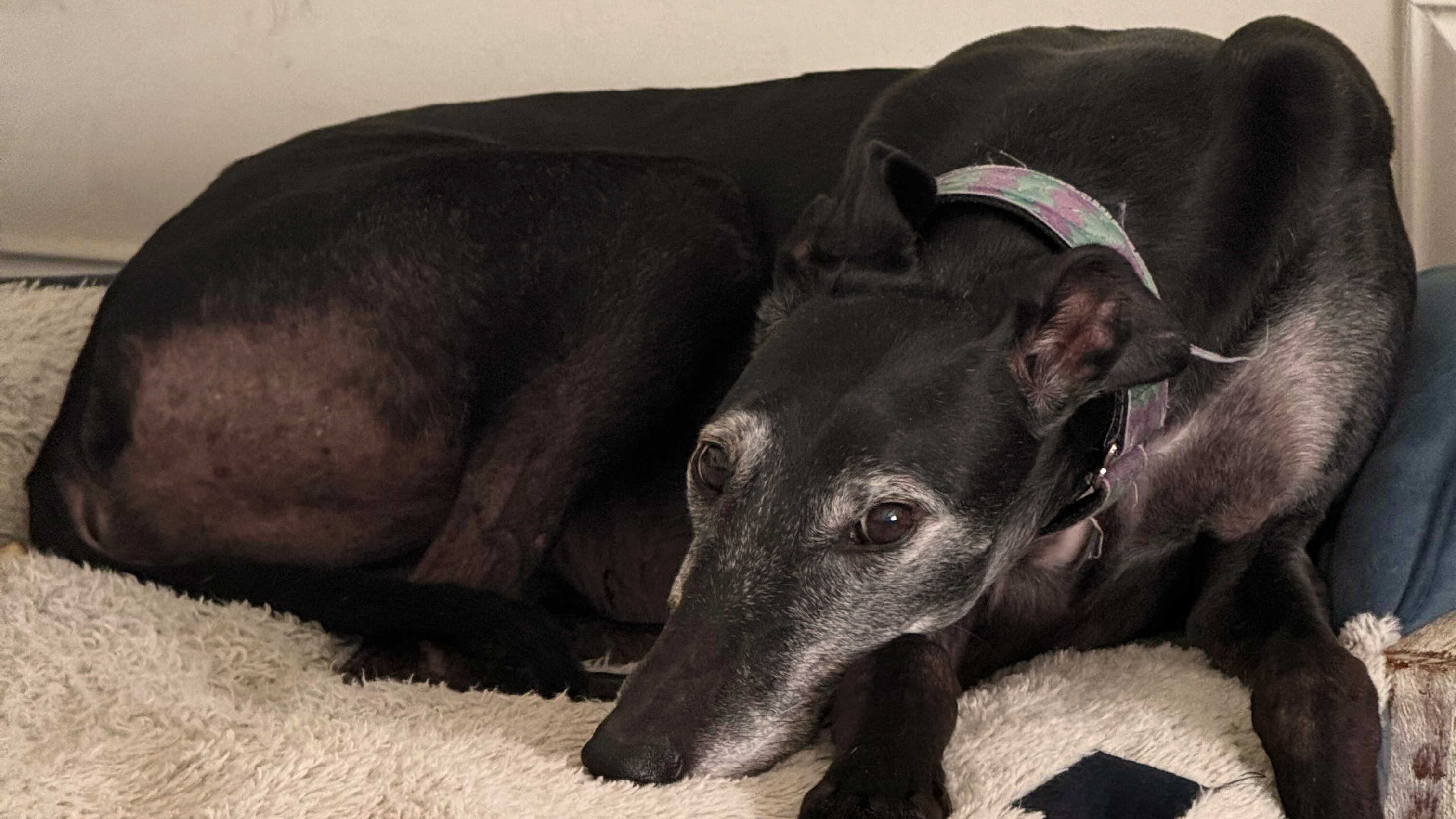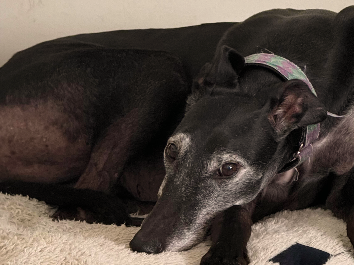 Mercury is a sweet 10-year-old rescued racing greyhound, and it would mean the world to me if I could keep her in my life for many more years.