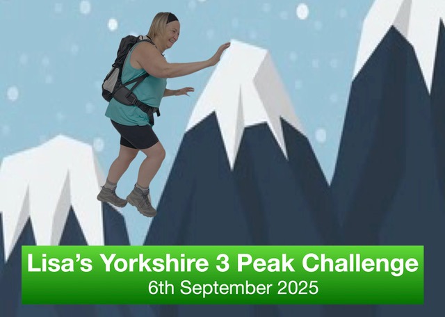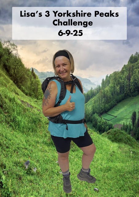 Hi, my name is Lisa, and on the 6th of September, I’ll be taking on the Yorkshire Three Peaks Challenge in aid of Barnsley in Recovery.