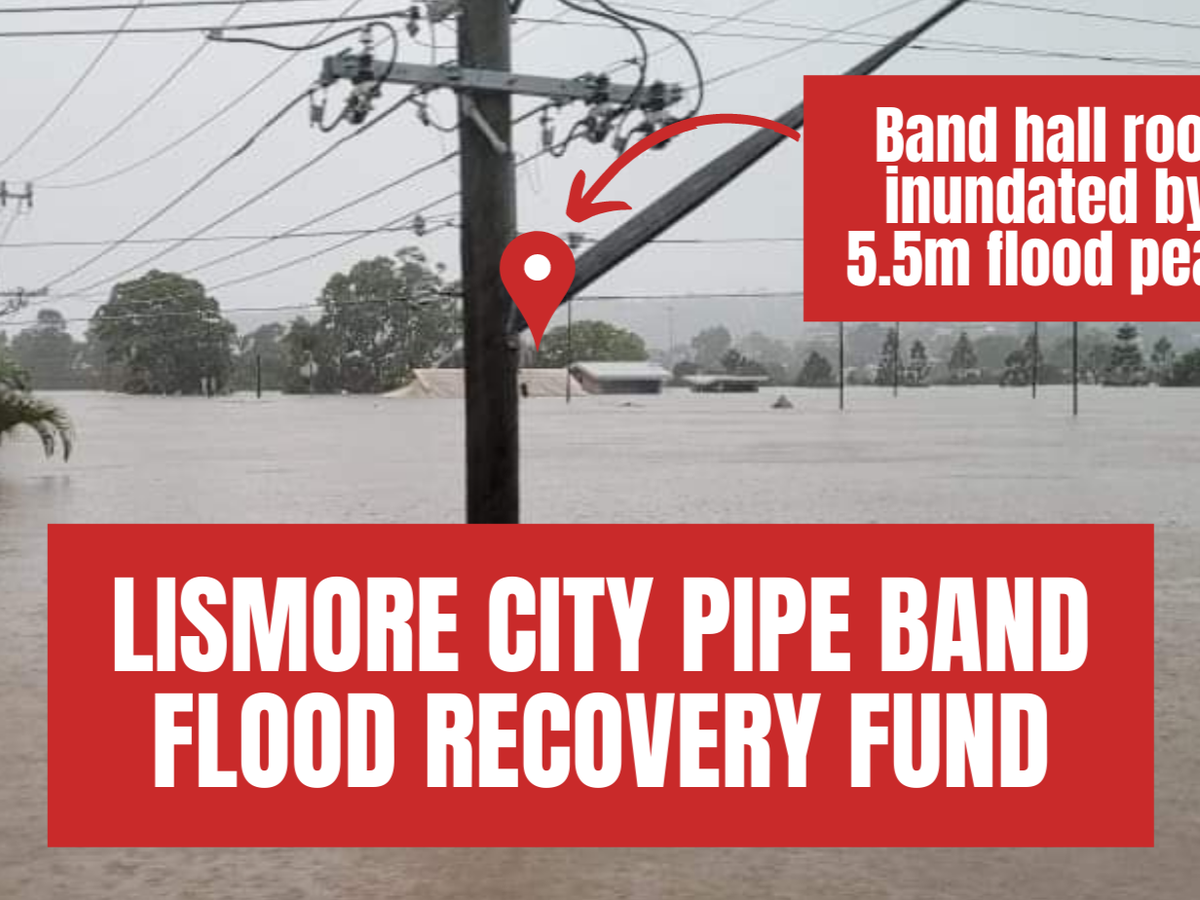 Pipe Bands Queensland is running this fundraiser to support Lismore City Pipe Band to restore their equipment and band hall as they re-establish after this disaster.