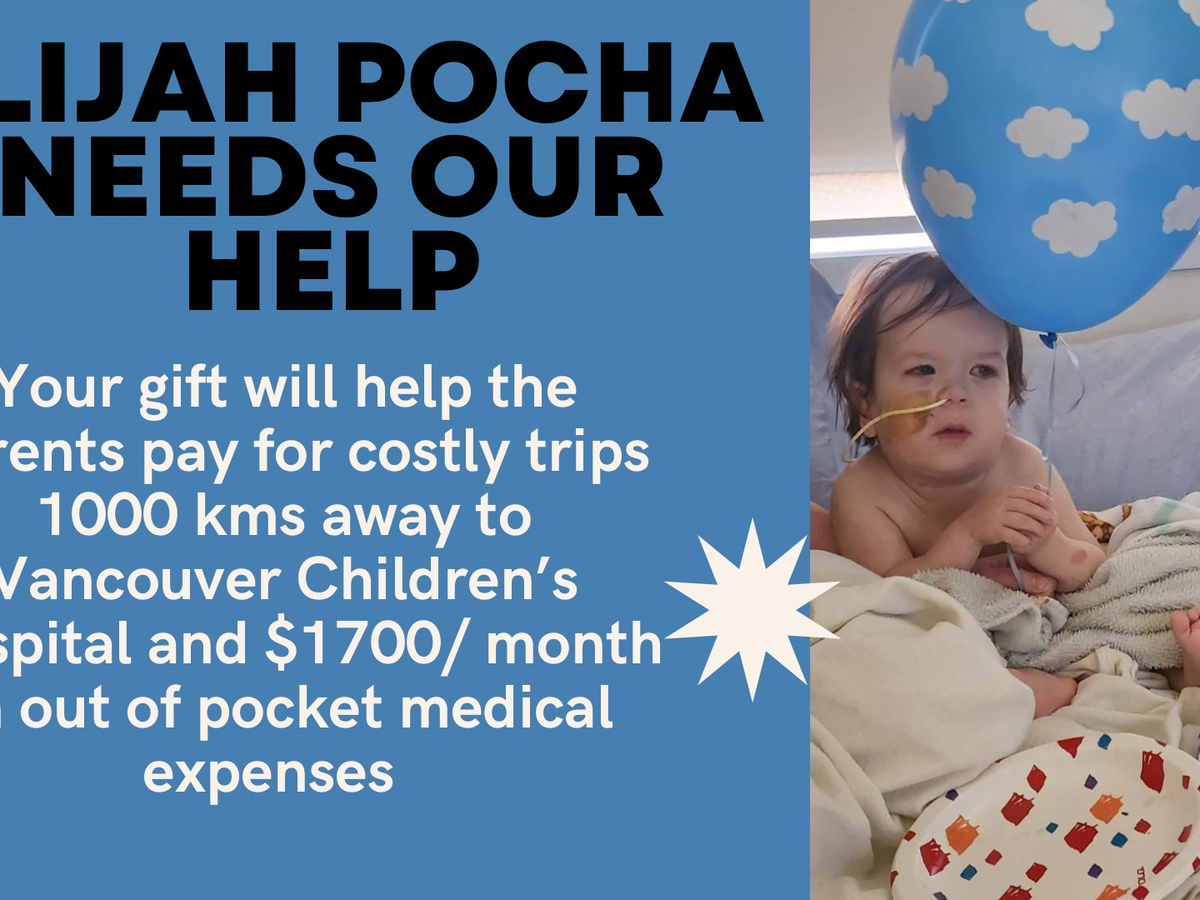 Elijah’s parents, Murray and Emily Pocha live in Cranbrook BC and have to travel to 1000 kms away to take Elijah to Vancouver Children’s Hospital, where they must stay in the hospital with their 4 month old baby as well.