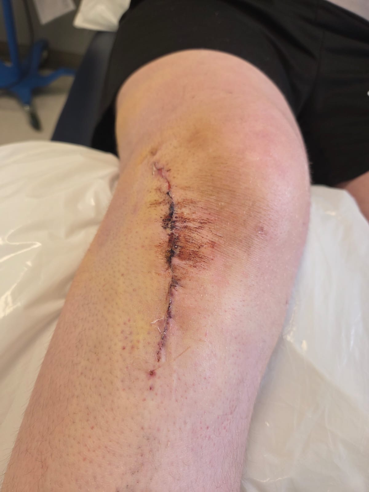 On Tuesday 22nd April Kyle was doing what he loved best playing rugby he was about 15minutes into the game when he took a big tackle and he went to floor when he stood up and tried to walk his leg immediately gave way. Fast forward to the end of the game we all just thought he had pulled a ligament in his knee or something so off he went to hospital to have scans roughly around 4am on Wednesday morning the news no one was expecting Kyle had a Tibial Plateau fracture and compressed it, meaning he was needing emergency surgery. Whilst waiting for a slot he was also told he wouldn’t be able walk for a minimum of 6 weeks, as-well as his family holiday he was due to go on in 10 days that he wasn’t possible to fly either! My brother was a broken man! He finally had surgery on Thursday morning 3 hours later he was out with screws and plates holing his bones together under his knee.