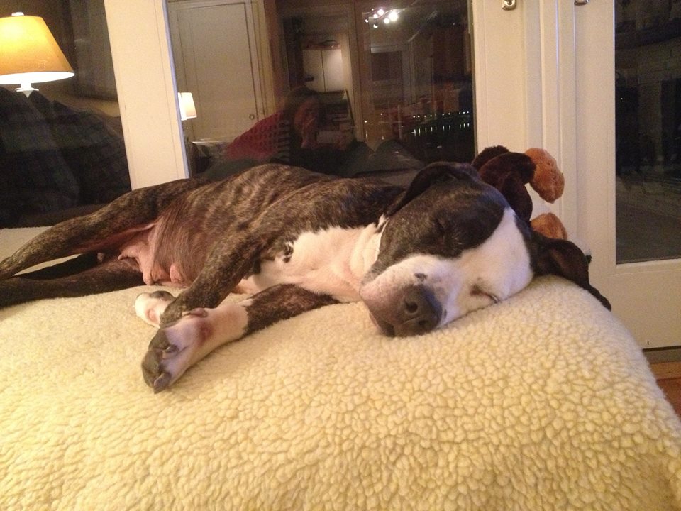 What we know about Layla (what I'm calling her): She is is almost 50% underweight.  She has had many litters of puppies. The last litter weaned just 2 weeks ago. She was found wandering the street in the bitter cold and was grateful to be taken in.