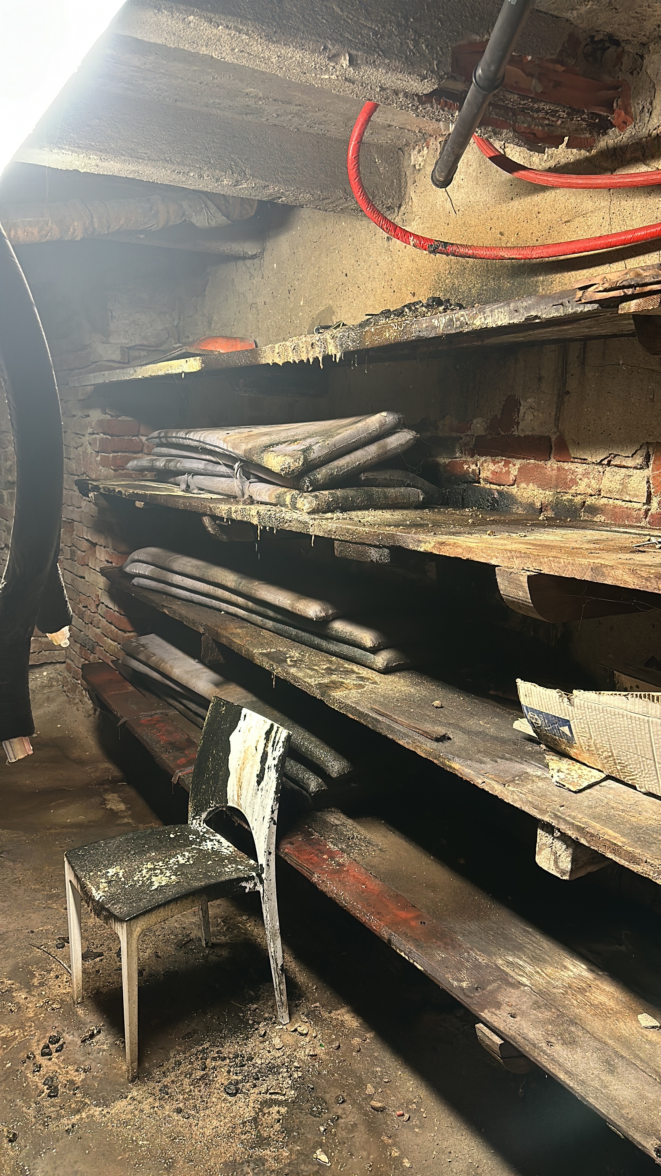 Ma la cosa più assurda è che nel seminterrato del locale sono presenti pilastri in acciaio mobili, anti-crollo, posizionati per sorreggere il piano superiore dove lavoriamo ogni giorno.