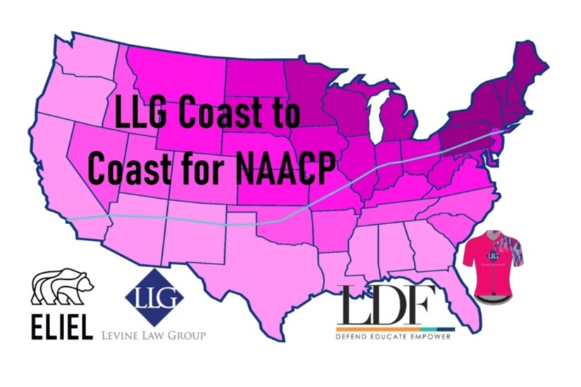 To represent the statistic that Black women are 2.8 times as likely to be arrested by police than white women*, our Levine Law Group Elite Women’s Cycling riders are committing to riding a total of 2,800 miles (taking us from NY to LA in distance) with the goal of raising $2,800 from June 24th through July 5th in our “LLG Coast to Coast for NAACP” challenge.