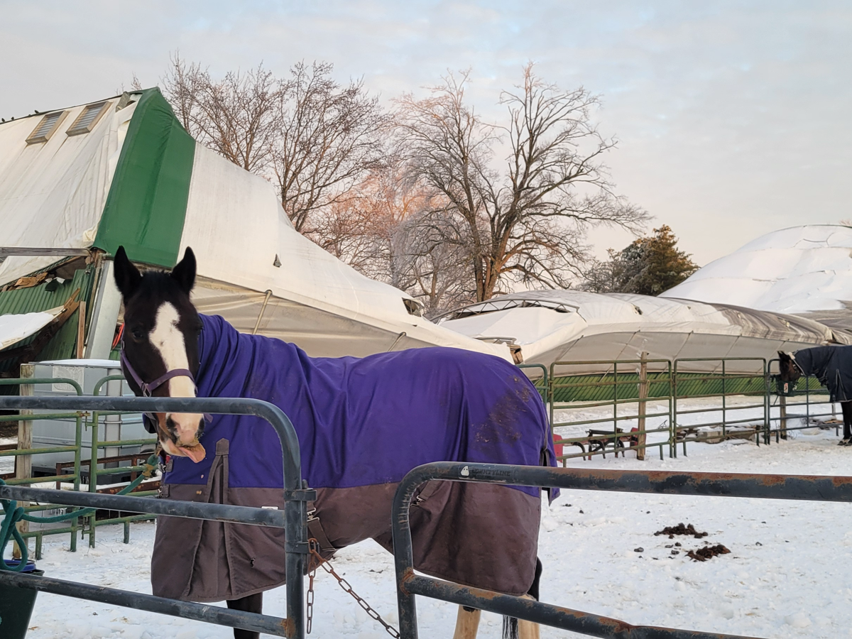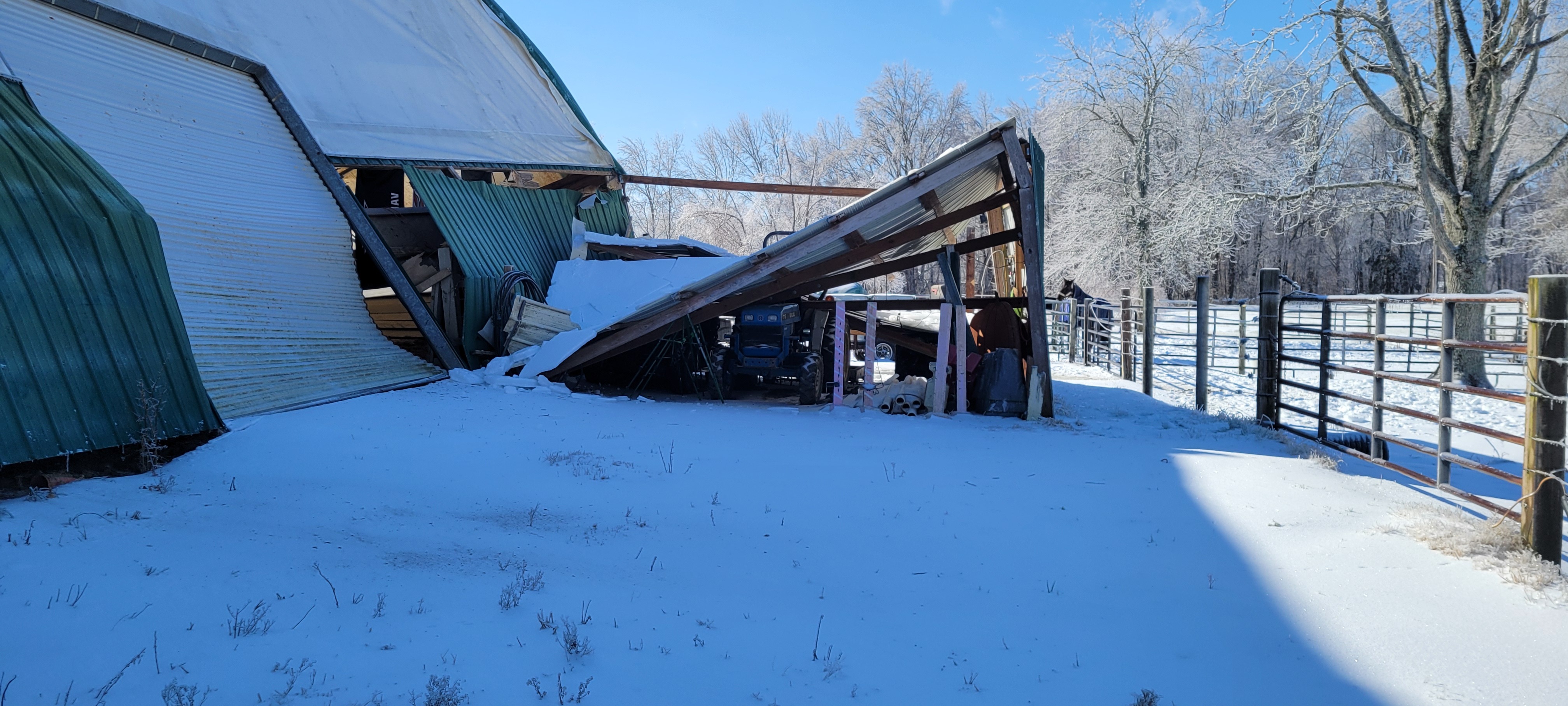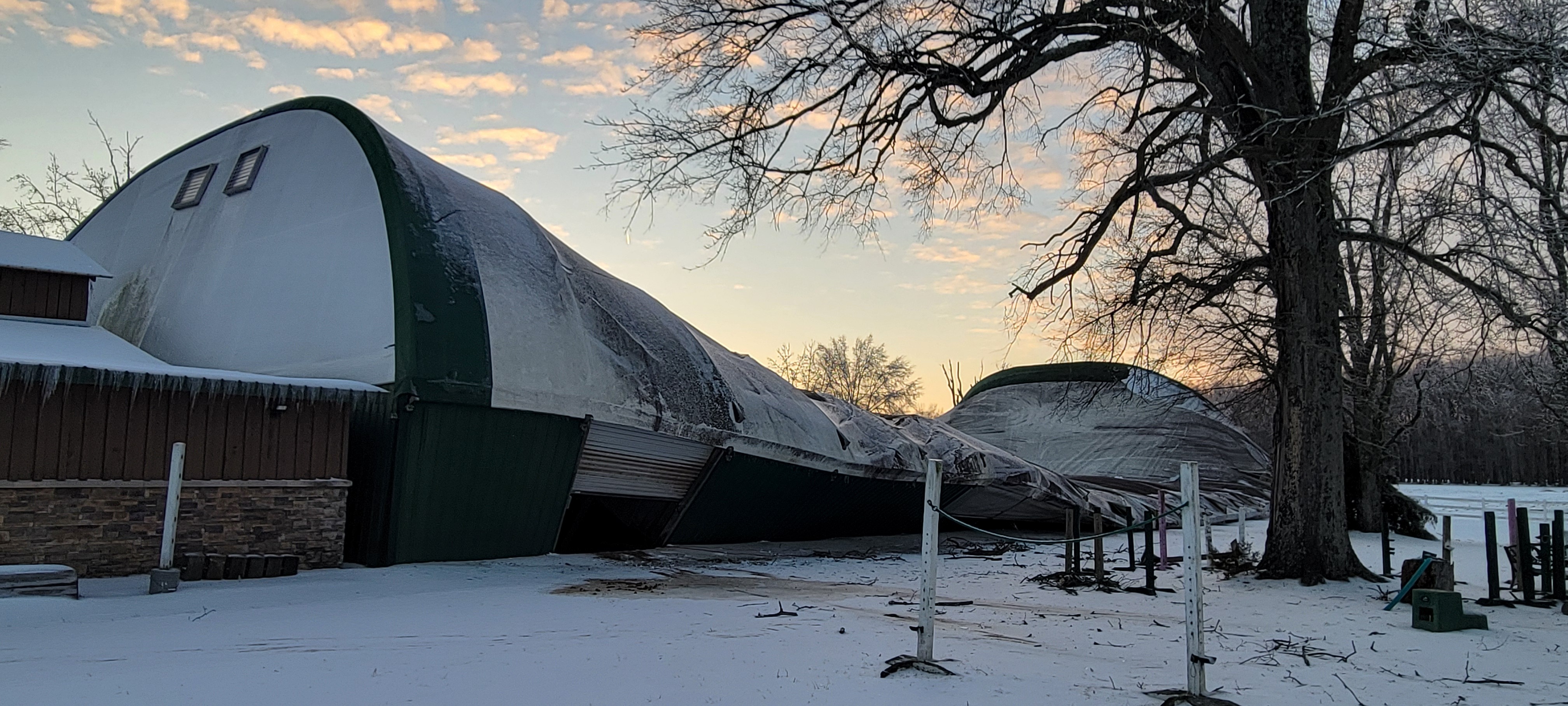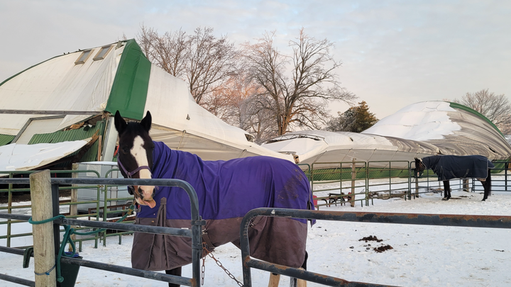 On 01/26/2026, Locust Run Stables endured a catastrophic building collapse due to snow/ice from winter storm Fern in Clarksville, TN. Fortunately, all horses and humans were out of the building at the time of the collapse, and there were no injuries or loss of life.