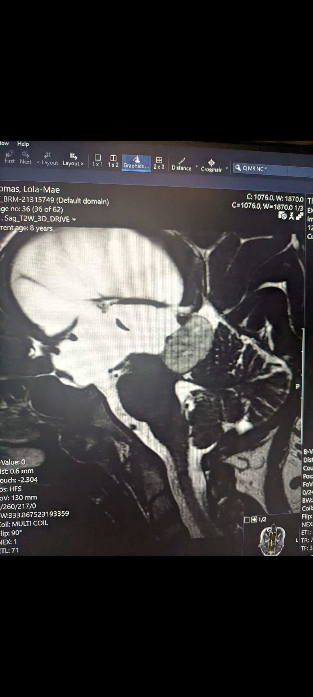 After being referred back to the hospital by the optician who had diagnosed Lola with papilledema (swelling of the optic nerve) Lola had an emergency MRI scan the following day. This revealed Lola had a tumor on the tectal plate of her brain causing a condition called obstructive hydrocephalus (a blockage causing build of cerebral spinal fluid in the brain) this was creating severe intracranial pressure and I was told she would need surgery immediately. We were transferred to great ormand street hospital by ambulance that night.
