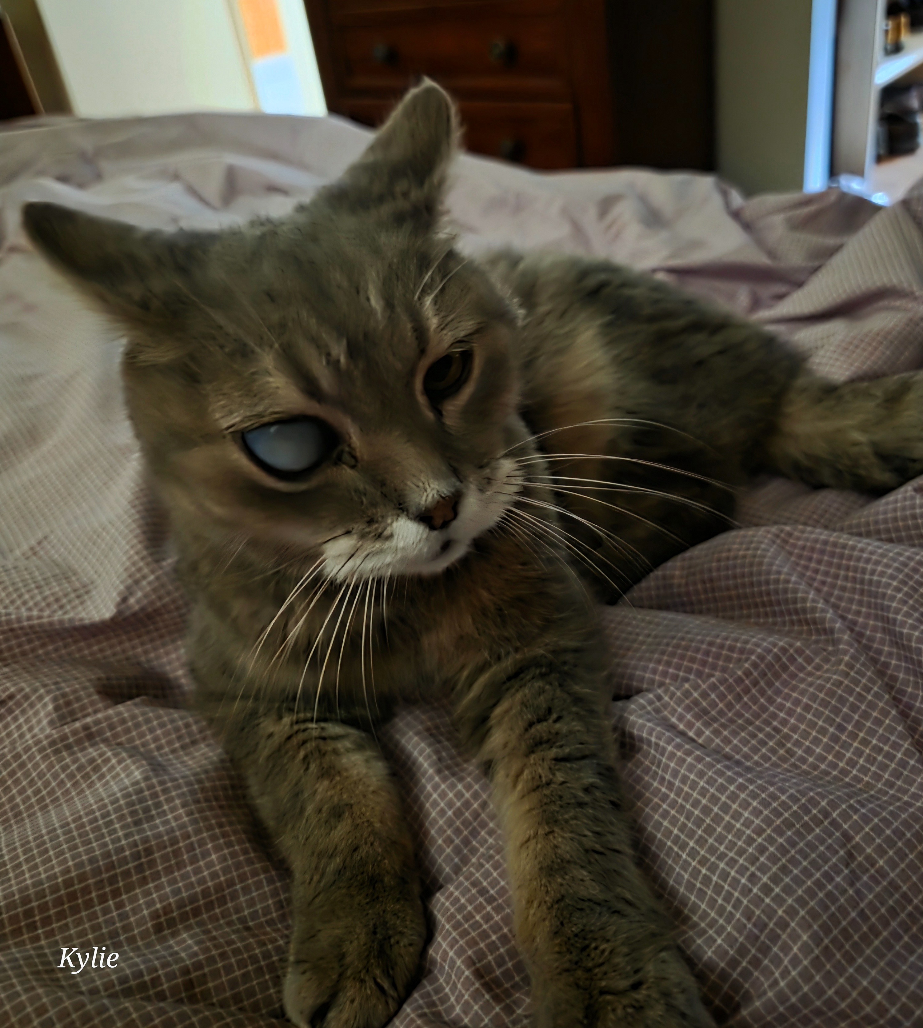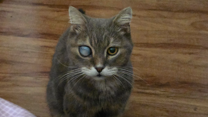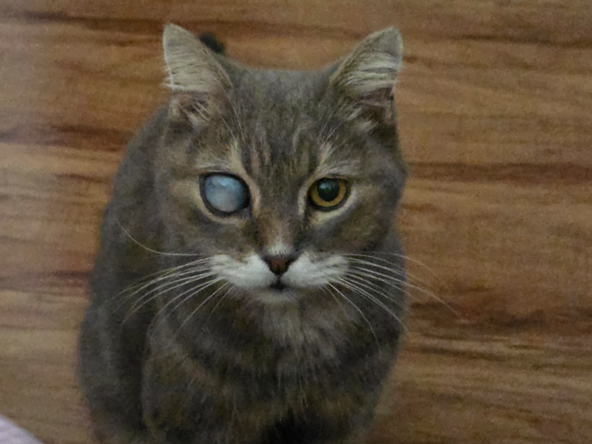 We've tried to find his owners but they haven't come forward so he is now my rescue cat. Louie is 15 years old and has been abandoned. His right eye has Glaucoma and needs to be removed. He can't see out of his eye at all. I would hate to think how much pain he is in. (Cats don't show pain) Louie has been to the Vets and has already cost me over $250 to have bloods and medication for his Thyroid. He will go back to the Vets in 3 - 4 weeks for bloods to see how he is going since being on medication. After that he will have his eye removed.