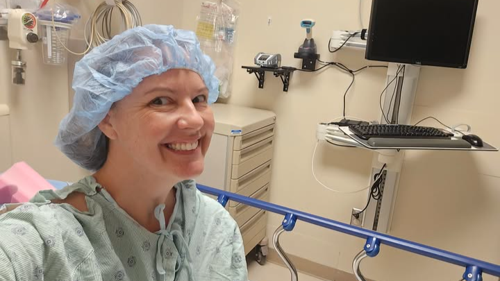 (picture is 6am pre-surgery with my hospital gown on backwards. lol.)