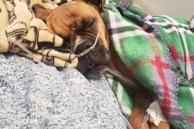 Eventually the owner was contacted in the evening, a witness saw someone on Old Jonestown Road and Grace Avenue, Swatara Township, Lebanon County get out of the car, look at Autumn and left her for dead. The witness called the owner who rushed her to Shores Veterinary Emergency Center in Harrisburg where it was determined there was a Fractured Scull with brain swelling and a punctured lung, she was transferred for more advanced care to University of Pennsylvania Veterinary Hospital . This family of 6 could certainly use some support for this horrible hit and run as well as the financial burden the medical bills will be. With your prayers and Love we can make sure she has a speedy recovery and returns home with her "brother" Founders.