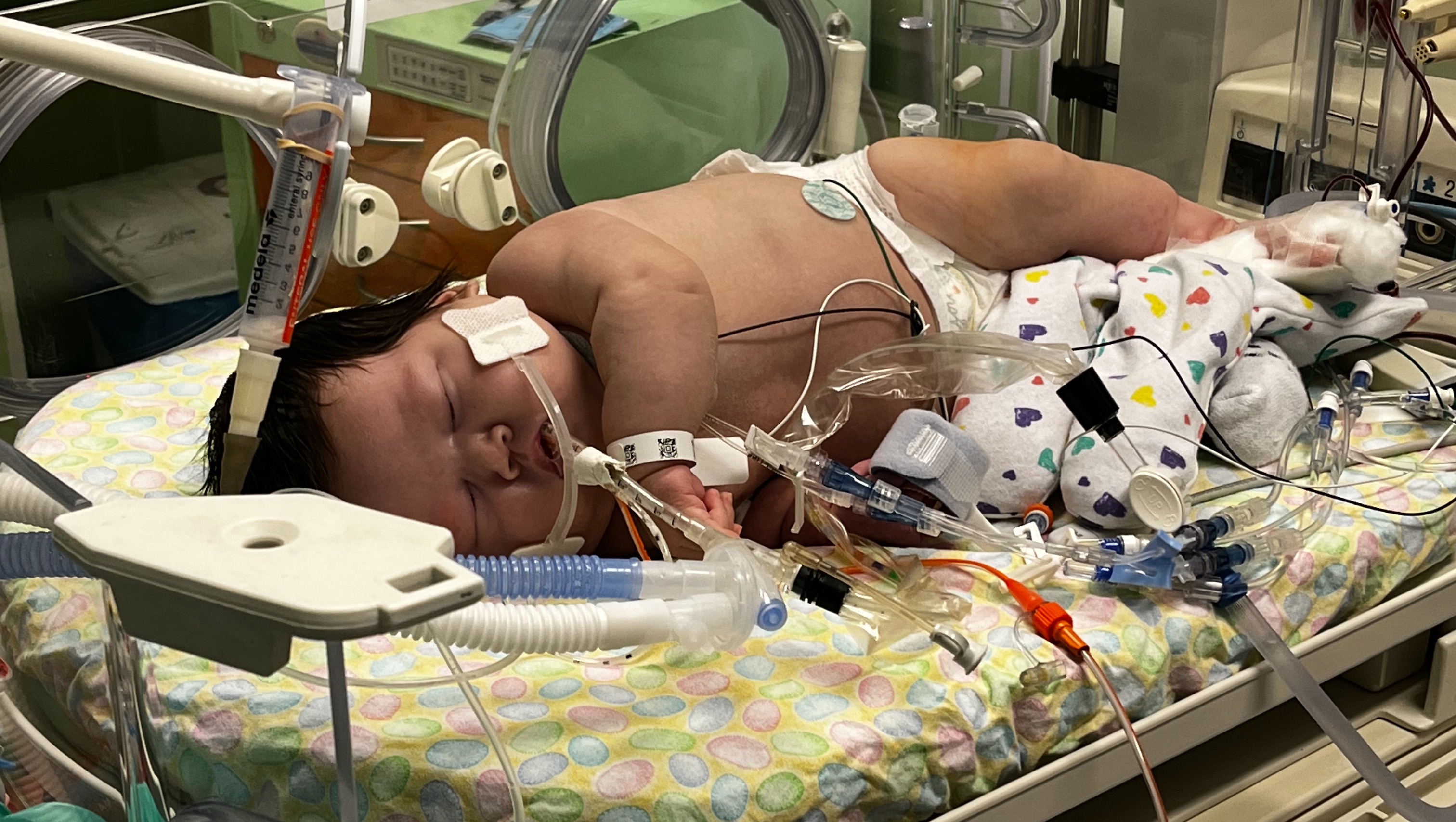 Kyler has recently had a Cardiac catheter procedure and is now trying to get over another bacterial infection. Our baby has just gone through so much. As of now, she remains on a ventilator and will need to have surgery to correct her heart defects. Drs don’t know when, it all depends on how healthy her left lung is. It could be weeks or months from now but she will remain in the NICU at Cook’s until then.
