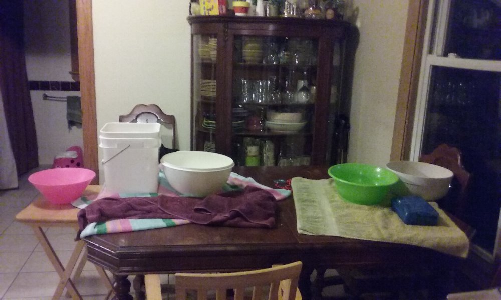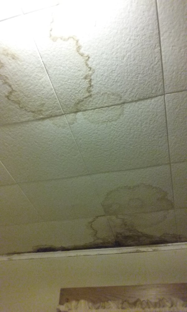 note: this is a picture of the 5 buckets being used to catch the water coming into the dining room.