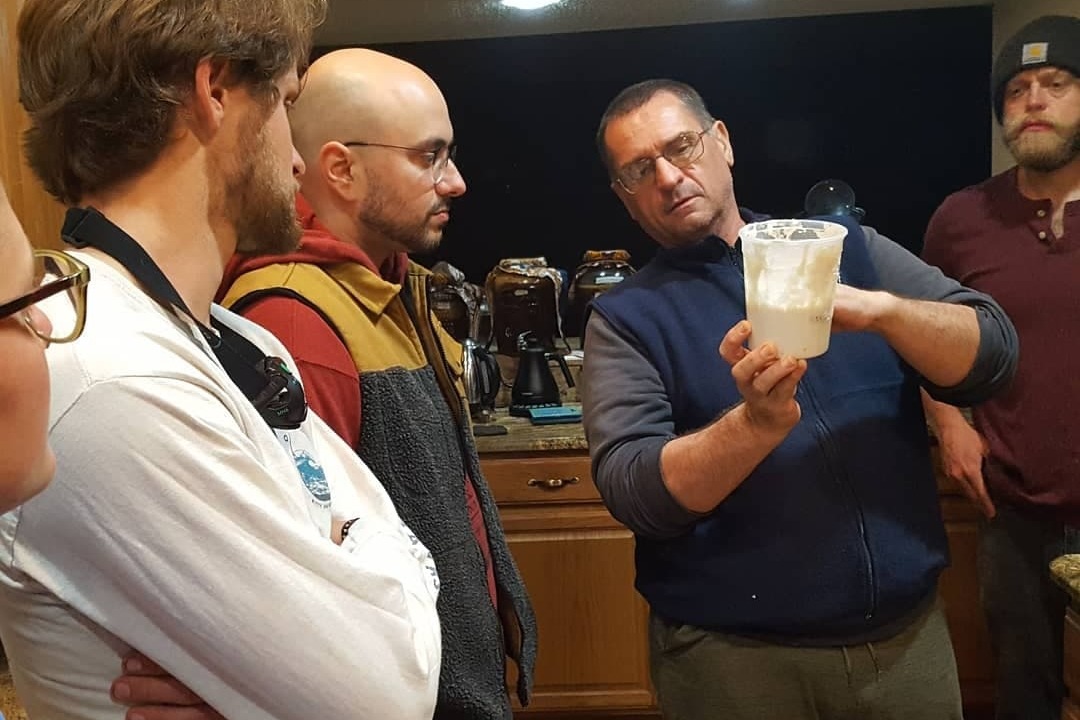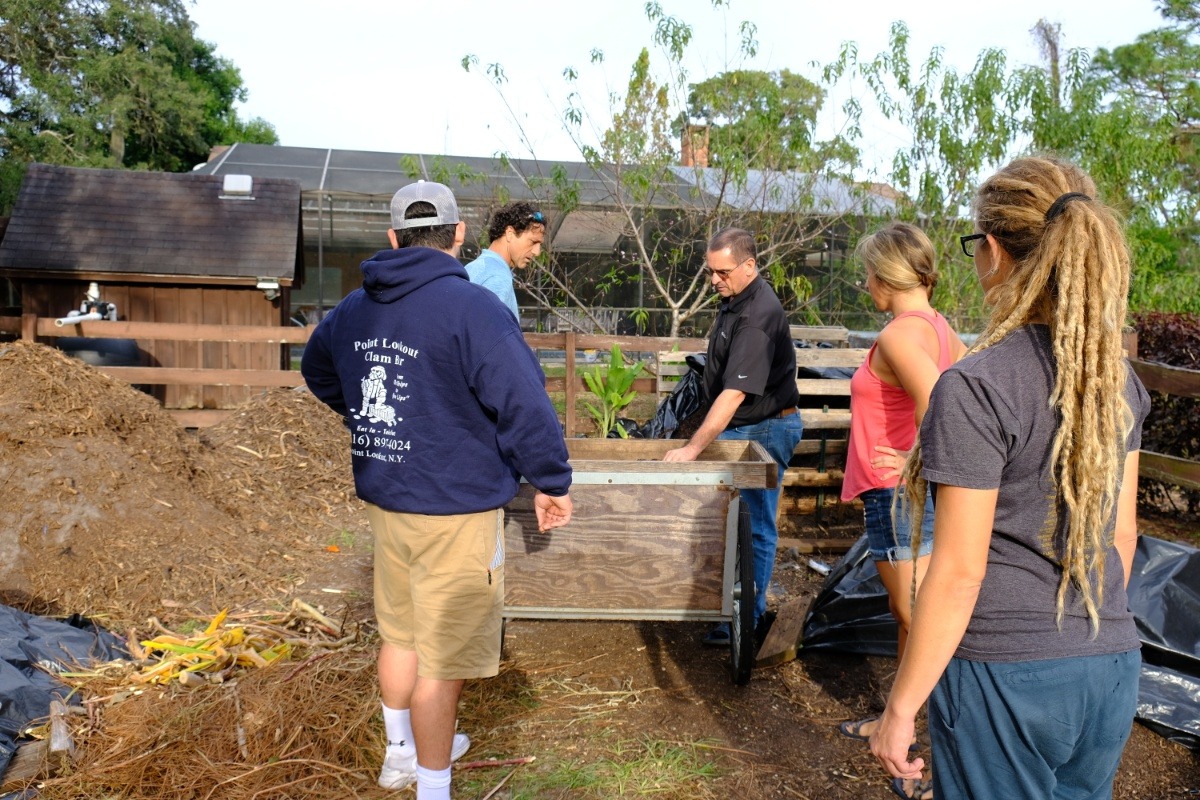 Students giving the newly created soil a smell test during instruction for their Permaculture Design Certification.