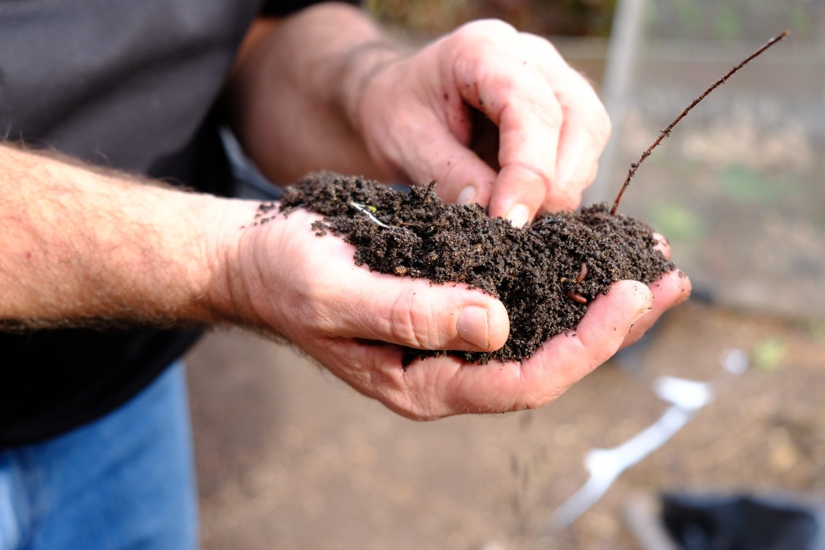 Sifting the soil in preparation to gift it to plants.