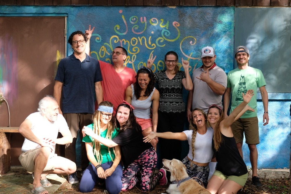 Students with instructors Steve, Koreen, Eric, and Yadi, on the last day of our Permaculture Design Certification course, after spending two weeks on the farm together.