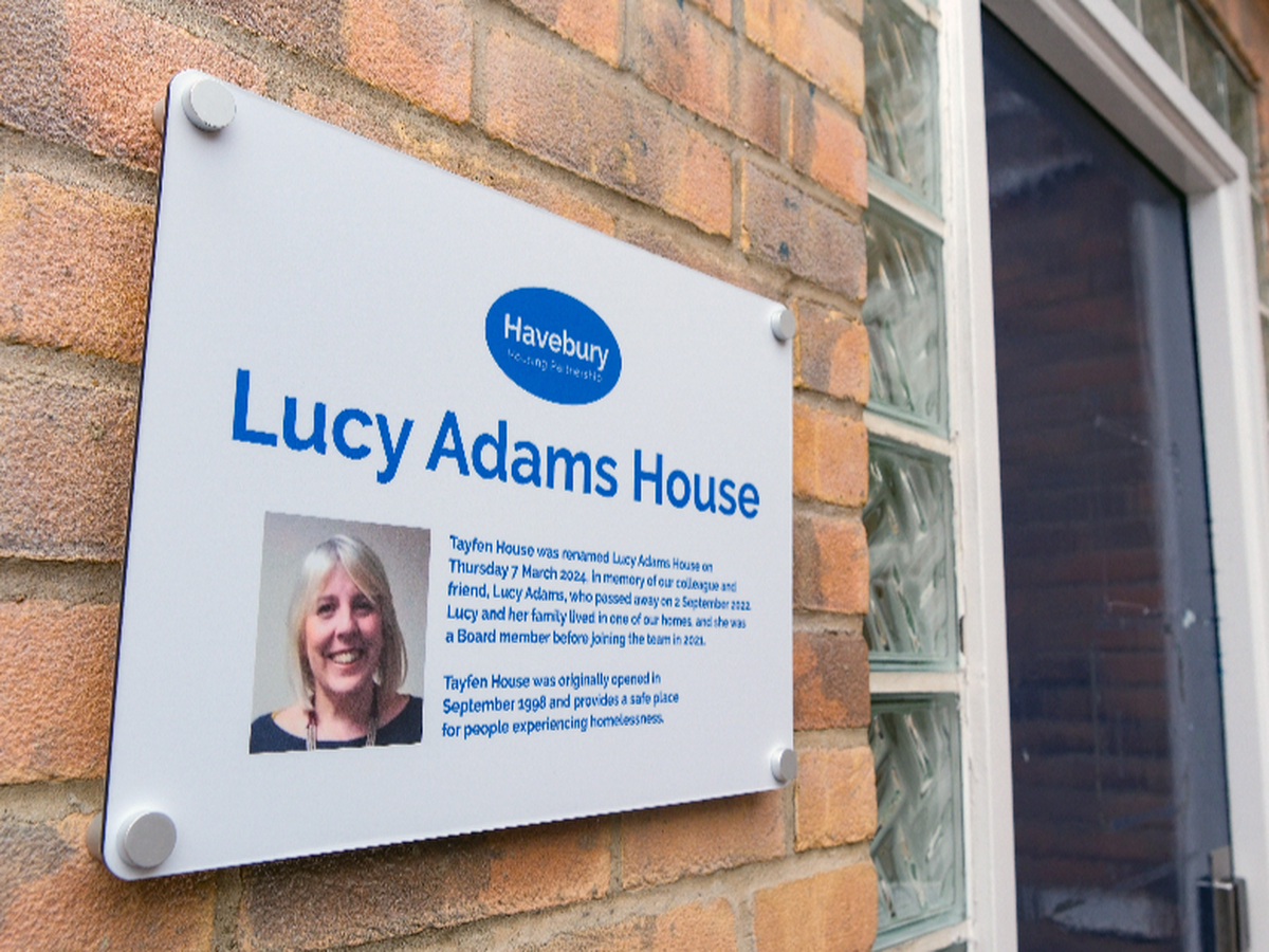 Lucy Adams House (formerly Tayfen House) is located in Bury St Edmunds and offers emergency and long-term accommodation for people experiencing homelessness aged between 18 and 65. The hostel was renamed in March 2024 in memory of Havebury colleague, friend and resident, Lucy Adams, who sadly passed away in 2022.
