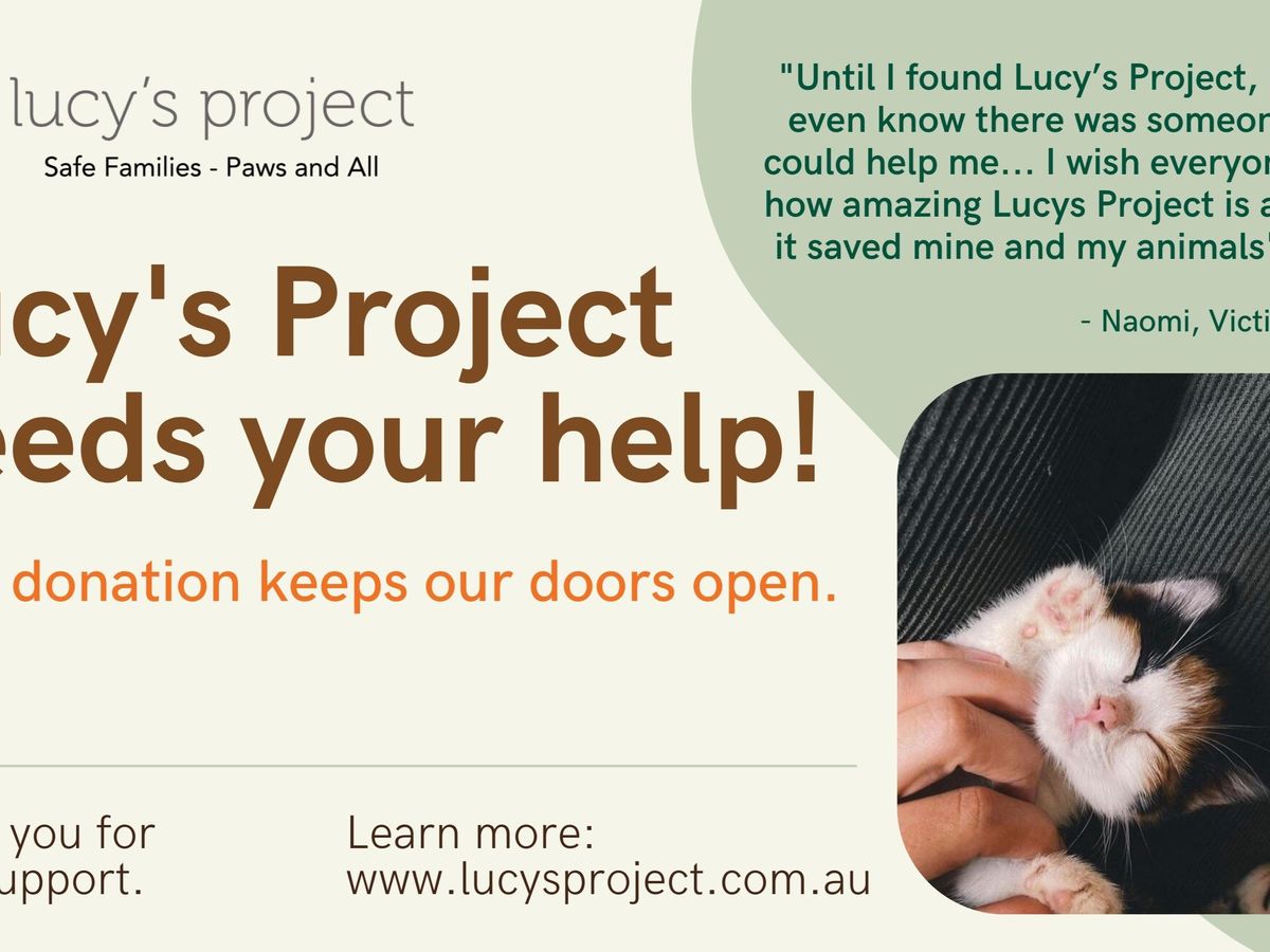 The work that Lucy’s Project does provides value and makes a difference in the lives of family violence victim-survivors. We know this because victim-survivors have told us themselves - many times. We have done so much work to be proud of. We advocate for DFV victim-survivors with animals, we create animal-inclusive referral pathways, we provide guidance for organisations and governments who wish to account for the link between violence to humans and violence to animals within their practices. We have seen our impact and our reach, and we still have so much more to offer. We desperately want to continue doing this work so that no one is ever forced to choose between their own safety and the safety of the animals they love. But we need your help.