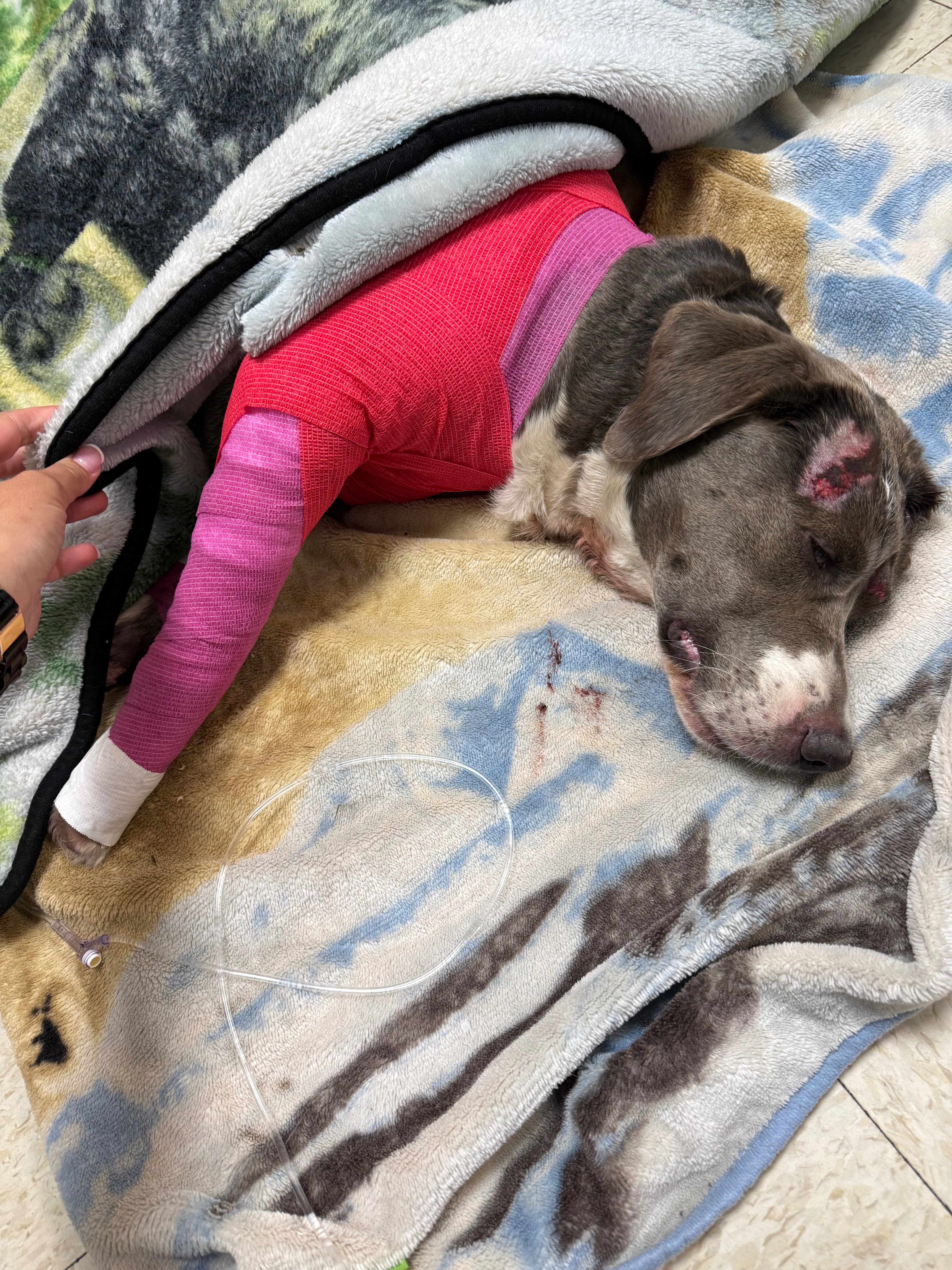 She is currently stable but has a broken front leg that will need surgery, a lot of road rash, and will need to be hospitalized. They are going to transport her by ambulance soon and I think she has a long road ahead, but my girl is ALIVE!!