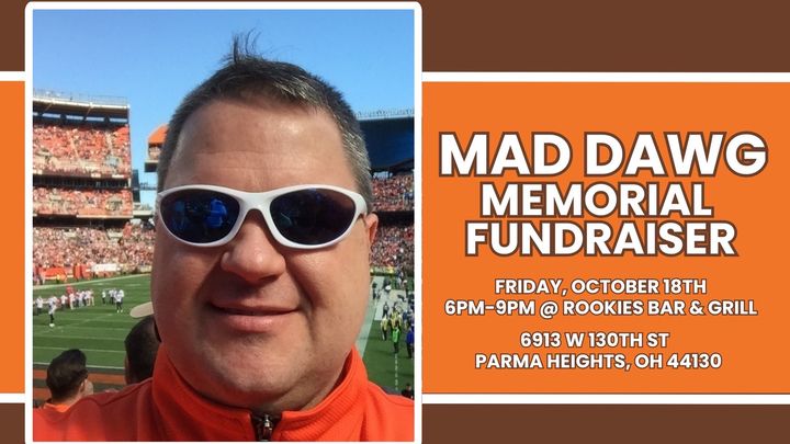 You can donate through this page and/or attend the “Mad Dawg Memorial Fundraiser” on Friday, October 18th at Rookies Sports Bar on 6913 W 130th Street in Parma Heights from 6-9 PM. $30 all you can eat/drink, games, and baskets to support the cause.