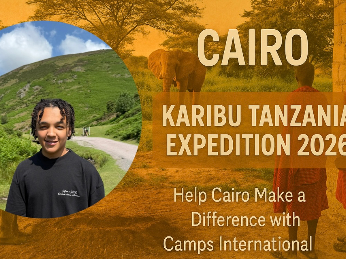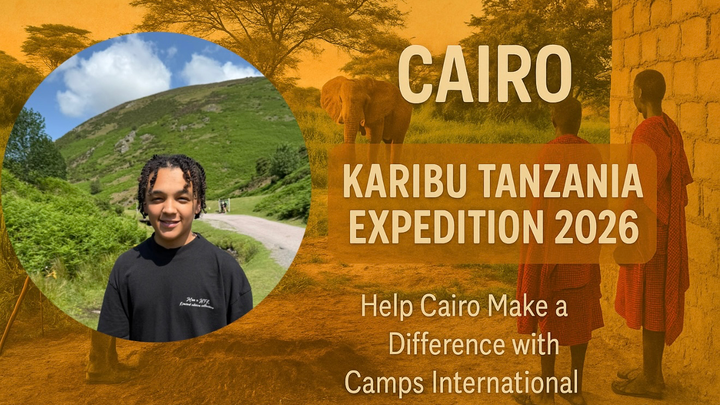 Hi, I’m Cairo! I’m thrilled to announce that I have been offered a place with my school, St Edmunds Catholic Academy, on a Karibu Tanzania Expedition with Camps International in July 2026. I’ll have the exciting opportunity to join a team dedicated to creating lasting, positive change in local communities. We’ll work on essential projects, such as improving school facilities, supporting wildlife conservation, and assisting with sustainable building. This journey isn’t just about adventure; it's about giving back and learning directly from the people we aim to help.