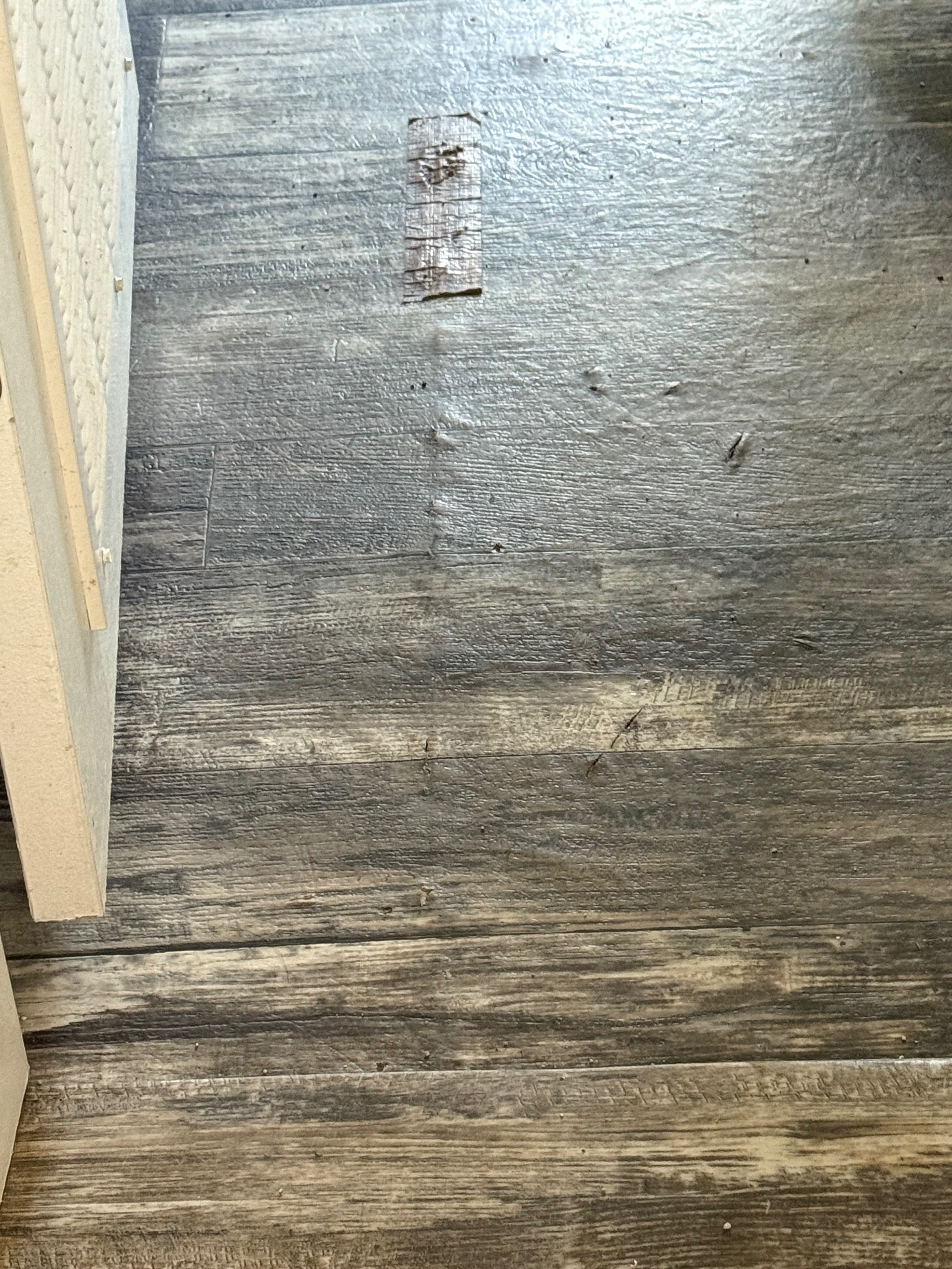 The builder used OSB board instead of proper subfloor plywood, so the damage spread quickly. Every time I step on those weak spots, I am terrified of getting hurt—or worse, one of the boys getting injured. The problem with this OSB board is that it’s very porous and that the glue doesn’t hold up once it gets wet. Even just steam can cause it to start to separate and we get a lot of humidity in Texas.