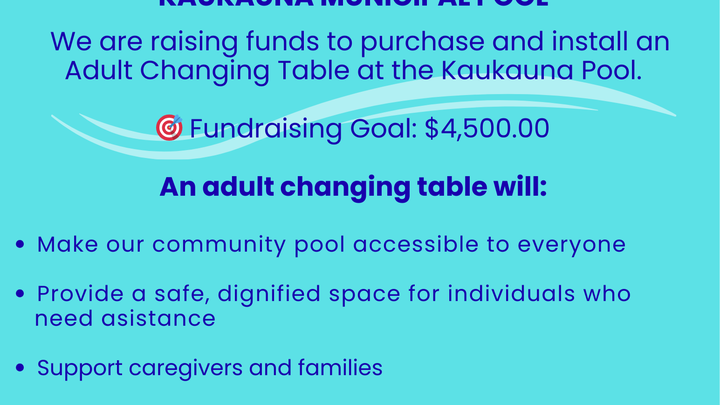 We are raising funds to purchase and install an Adult Changing Table at the Kaukauna Pool.