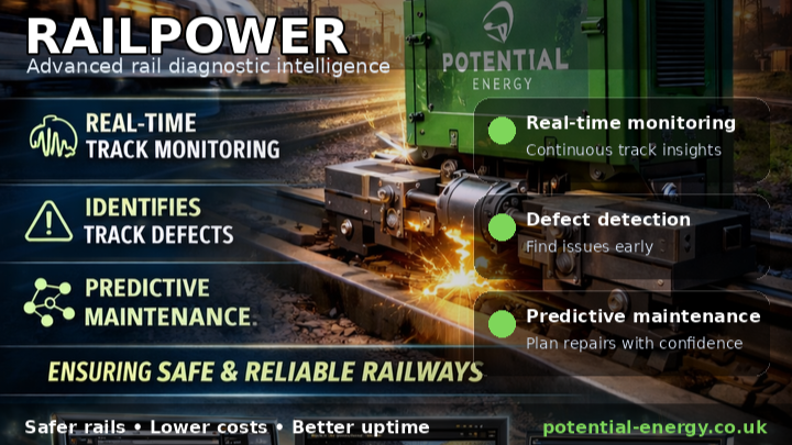 RailPower is a compact, trackside rail diagnostics device designed to help rail networks see problems earlier, act faster, and keep services running safely. Installed alongside the rail, it captures high-value condition data as trains pass. This turns everyday operations into continuous insight. Instead of relying only on periodic inspections or reacting after faults occur, RailPower supports a more proactive approach detecting emerging issues, highlighting risk hotspots, and helping maintenance teams prioritise the right work at the right time.