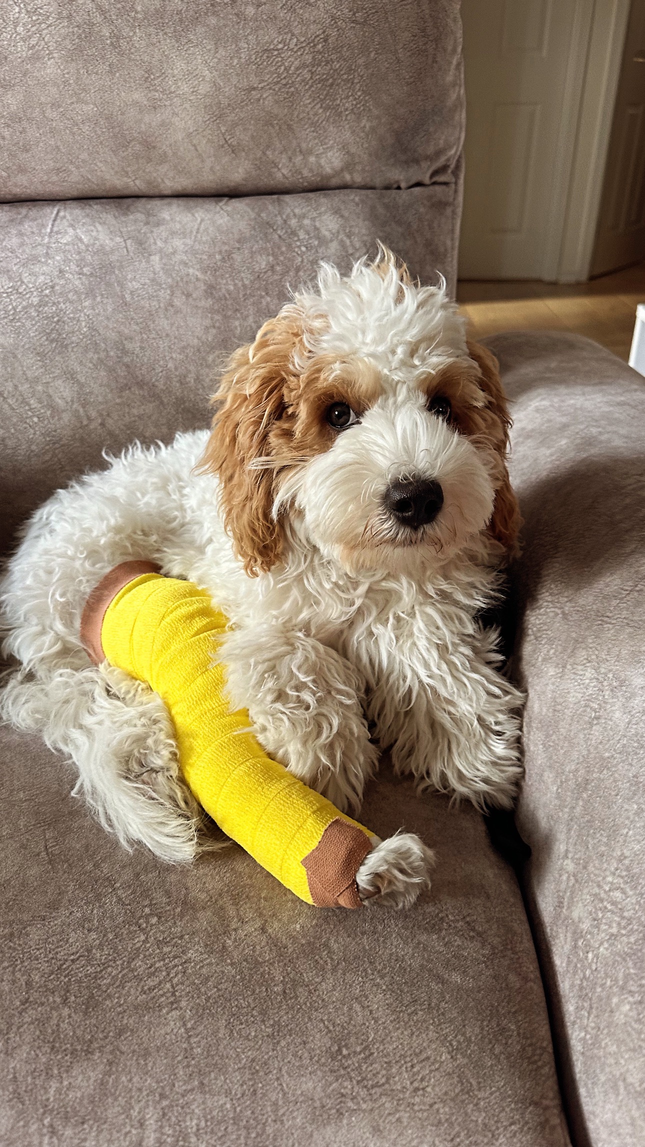 Mon chiot de 4 mois et demi Malcolm doit subir une opération à la patte arrière suite a une fracture de la rotule après une mauvaise chute dans les escaliers hier soir ! Et ne pas faire la chirurgie n’est pas une option car il n’aurait pas de qualité de vie.