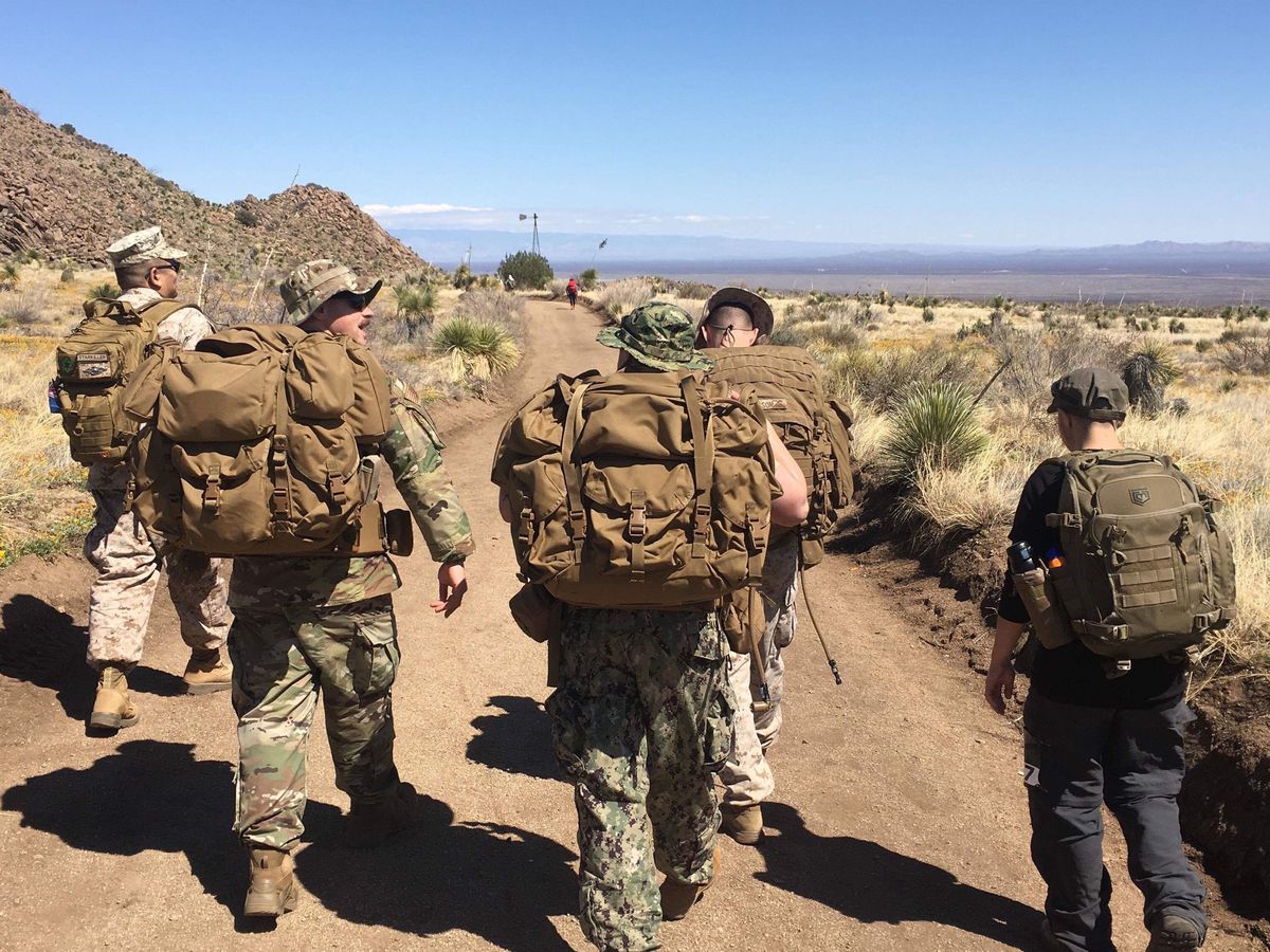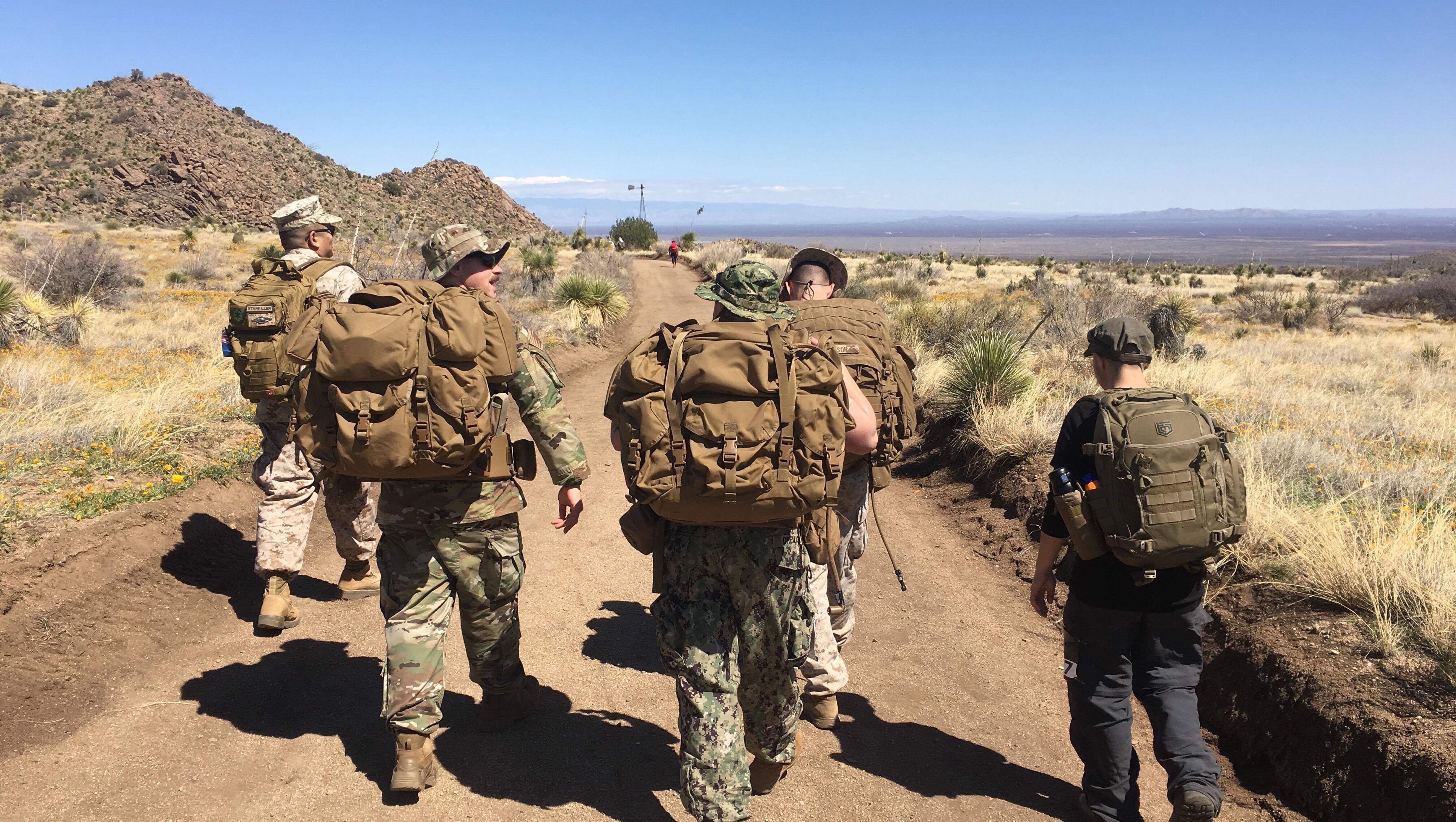 Two Sailors, an Airman, a Marine, and a prospective Coast Guard recruit went on this trek. All but one were trans servicemembers. We finished the ruck with heavy packs and even at the 26-mile marker, we held a little reenlistment ceremony for me. My reenlisting officer was trans.