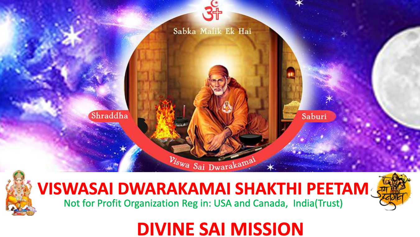 In line with its core philosophy that the path of self-realization is through devotion (Bhakti) coupled with Service (Seva), Viswa Sai Dwarakamai aspires to spread this “Sai Tattwa” globally to build an integrated universal Shirdi Sai Baba family (“Vasudaika Kutumbamu”).