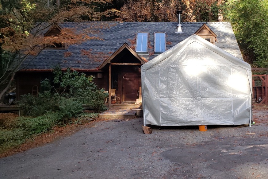 Here is the house with our little pop-up garage. November 2019