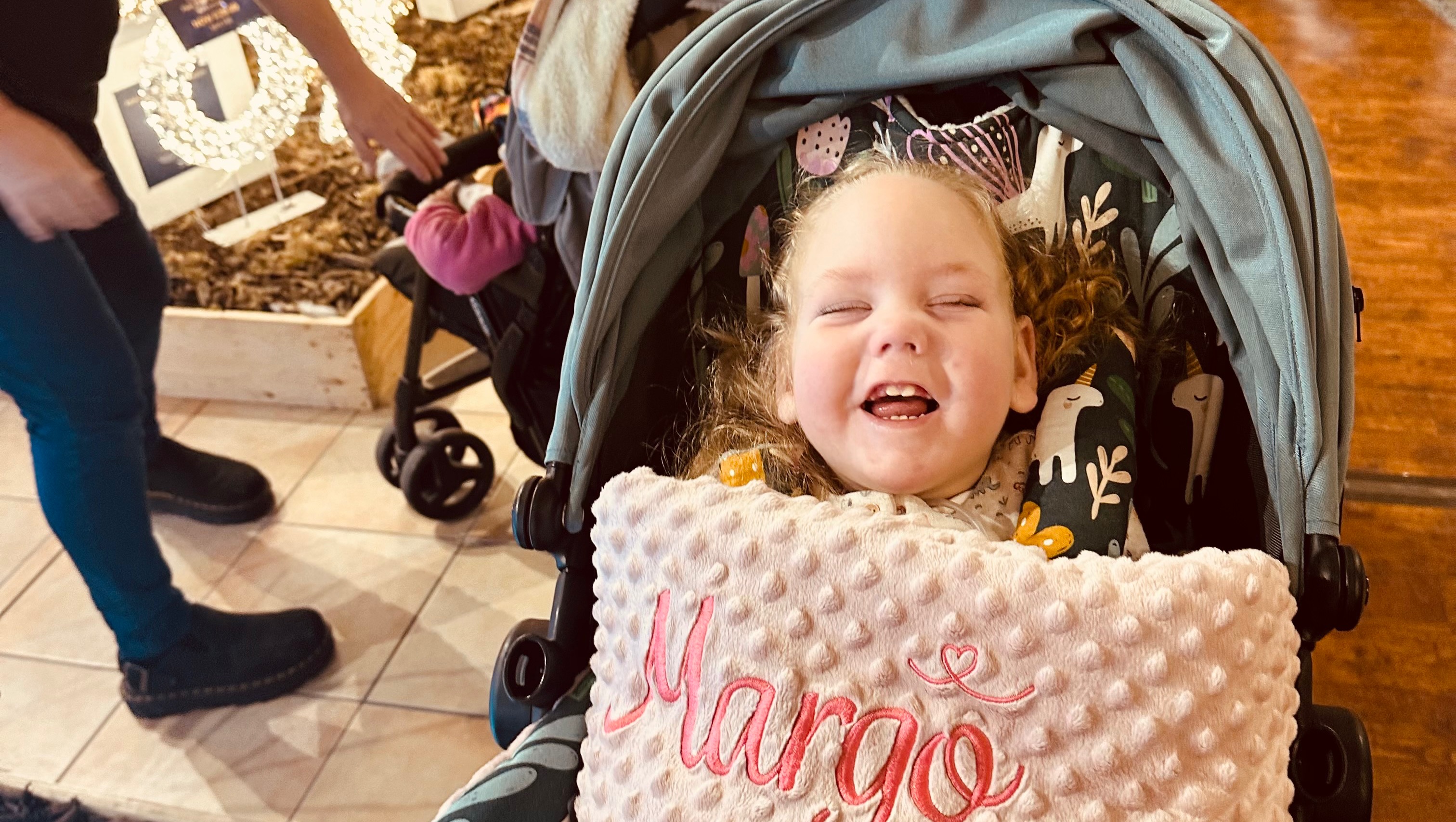 Fortunately Margo showed her strengths and pulled through, although unfortunately at some point during her birth/ before birth her brain was starved of oxygen and she obtained a severe brain injury. Margo has about 10 percent of her brain left. She has high tone to all limbs, has uncontrolled seizures and due to her seizure medication sleeps a lot of the time which hinders her rehabilitation.
