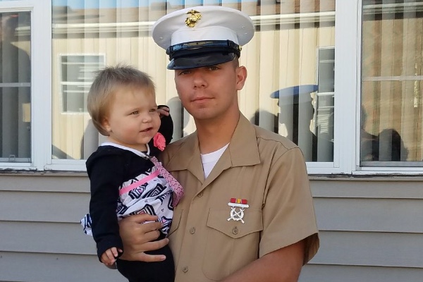 This is Tyler, he’s a single father and a United States Marine. He’s worked so hard to get to where he is right now, because as long as we (his family) can remember he has always wanted to apart of the Military. We couldn’t be prouder of him for following his dreams. But most of all for trying to provide a better life for his daughter Novalynn. Nova had her first birthday on family day, the day before Tyler’s basic training graduation. She got to spend her first birthday with her daddy, as well as us getting to celebrate him for making it through basic.