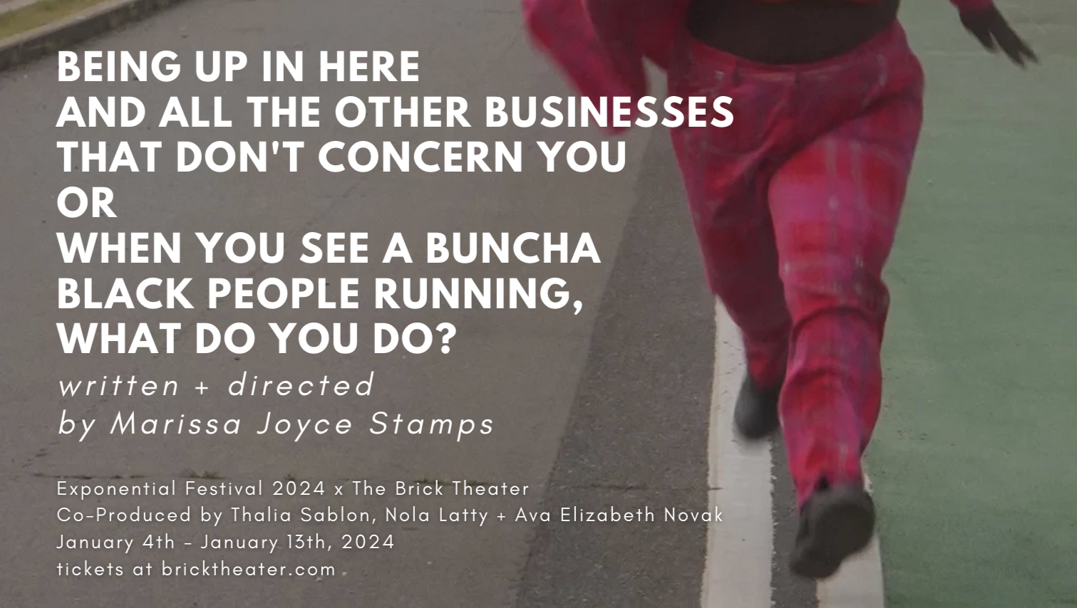 Hi! My name is Marissa Joyce Stamps, and I’m a NYC-born and based Haitian-American writer, director, and educator. As you read this, I am excitedly preparing to go into the production process for a new play of mine, Being Up in Here and All the Other Businesses that Don’t Concern You OR When You See a Buncha Black People Running, What Do You Do?. This play, which I am also directing, will premiere at The Brick Theater from January 4th-13th, 2024 as part of the selected lineup for Exponential Festival 2024, a Brooklyn-based month-long theatre festival that is committed to NYC’s experimental artists. What's so special to me is that this play was written during my second semester at Brooklyn College in 2022 and this will be the first production of a play of mine post-grad school. It truly feels like a full circle moment I'm incredibly grateful to be in.
