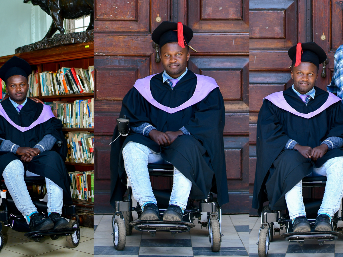 On December 13, 2024, I graduated from the University of Nairobi. At the Graduation Square, I was the only graduate in a wheelchair, with my parents, my mom on the right, my dad on the left, my dad shed a tear as my name was called out while my mom whispered "You've shown the world what is possible". That moment when I graduated with my BA in Sociology and Economics with Second Class Honours drives me to prove that dreams do not have limitations.